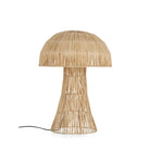 La lampada da tavolo "Bagan" è un'opera d'arte realizzata a mano che fonde armoniosamente il giacinto d'acqua con il metallo, creando un design unico e distintivo.