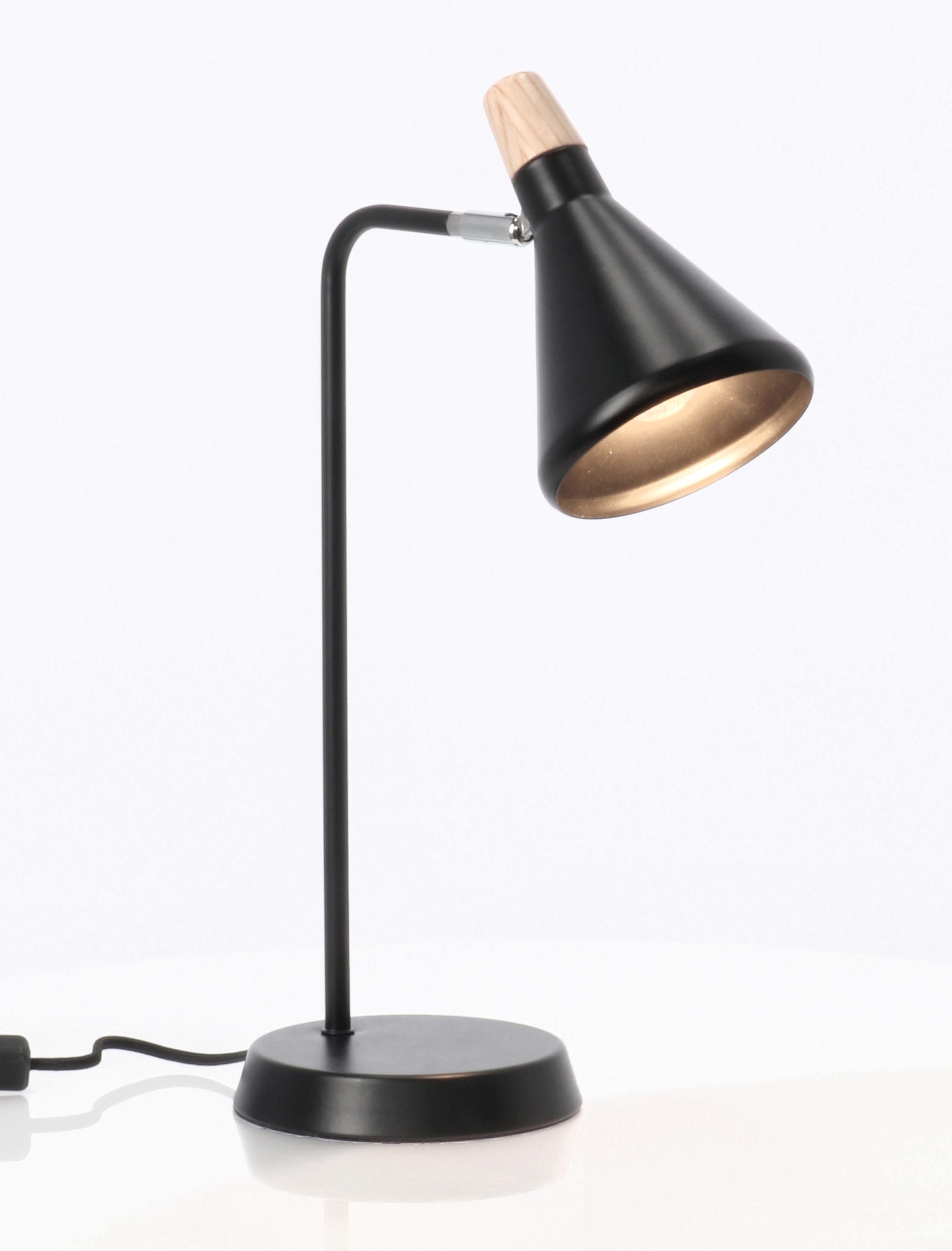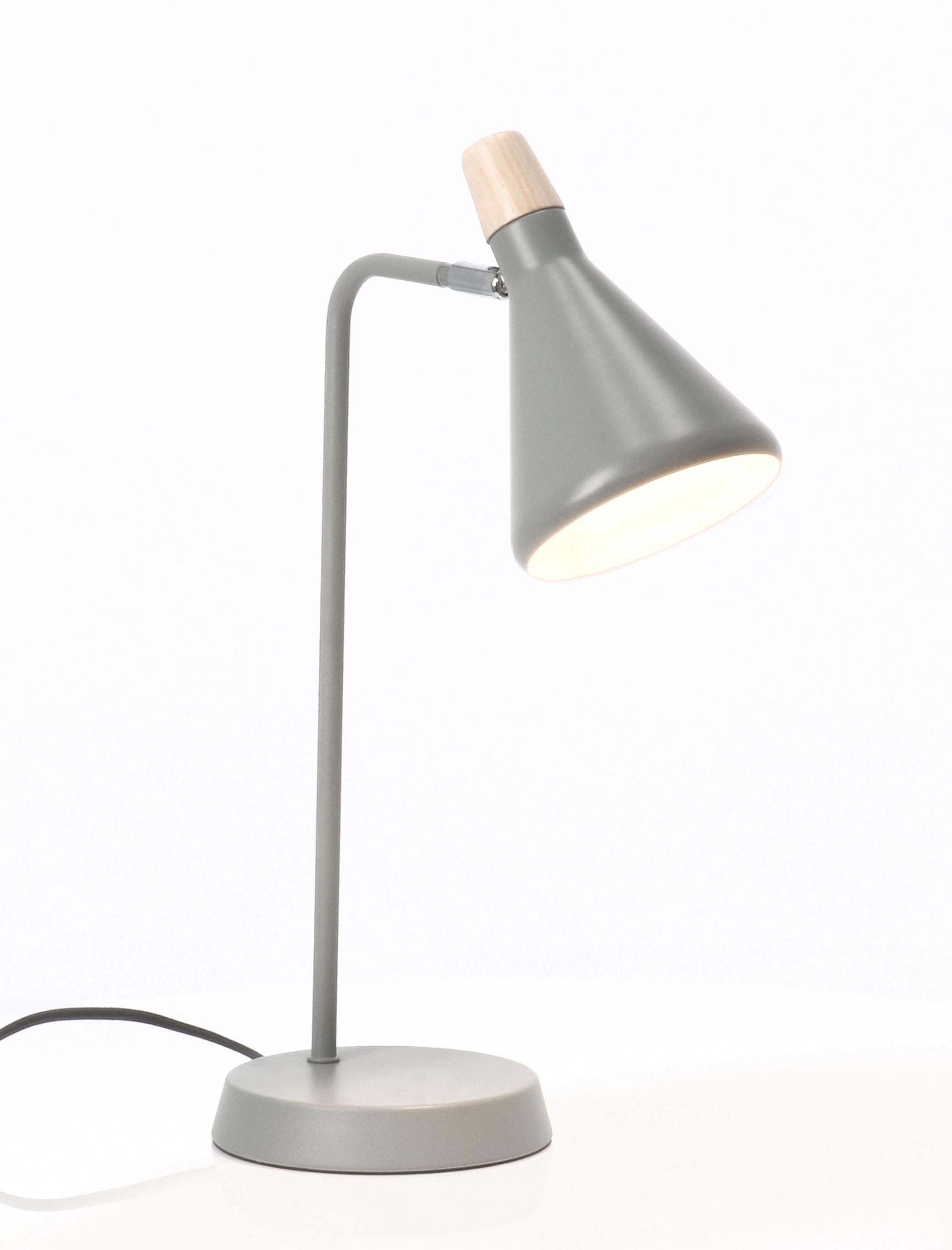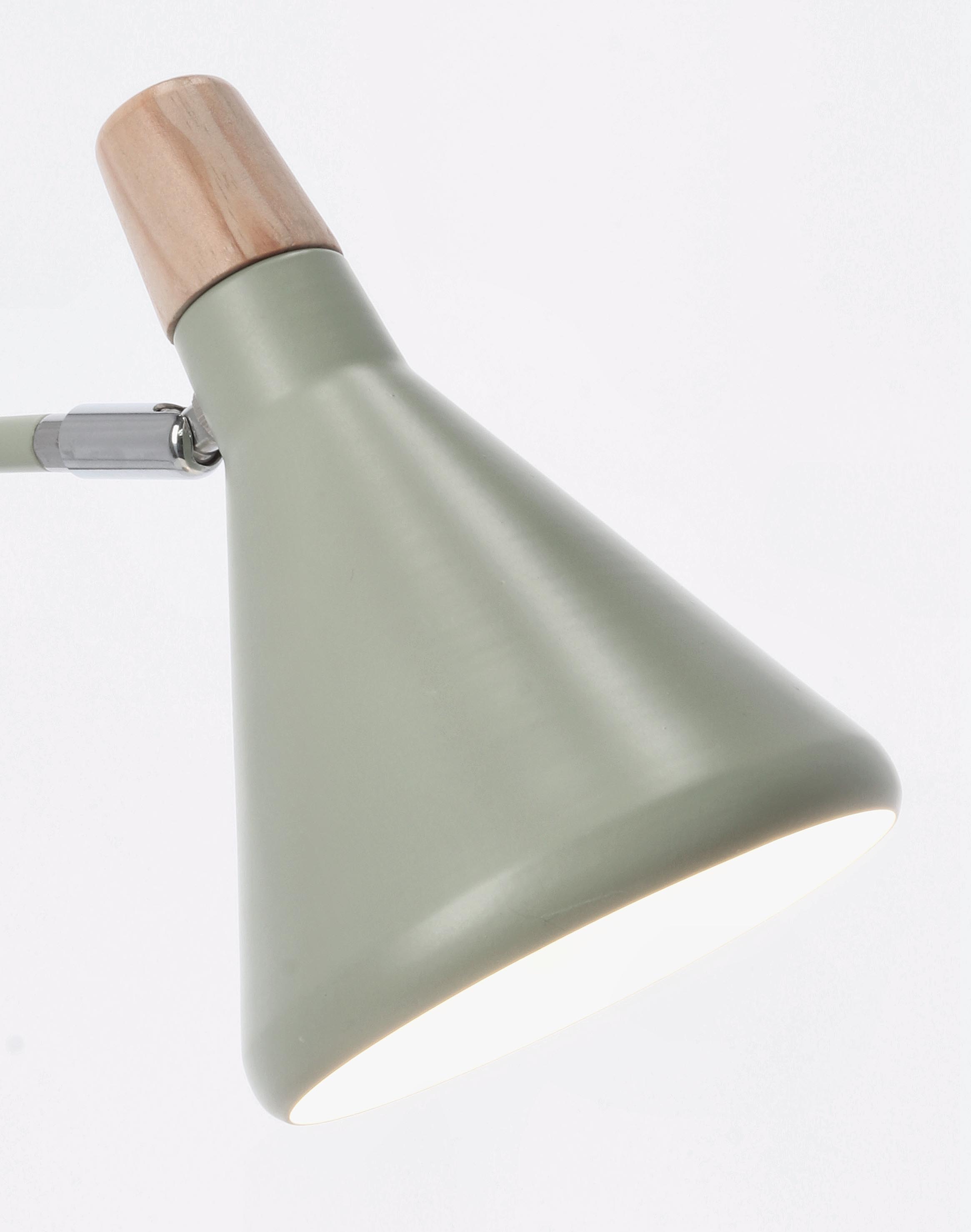 La lampada da tavolo "Brill" è caratterizzata da un'elegante combinazione di materiali, con una struttura principale in acciaio verniciato a polvere e dettagli che includono l'uso del legno di pino. Questa fusione di materiali conferisce alla lampada una presenza visiva distintiva, con una base stabile e una finitura che riflette un design moderno e curato.