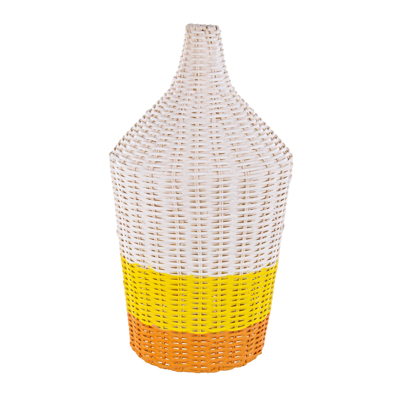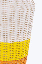 La lampada "Sun Rattan" presenta un design vibrante, con tonalità giallo-arancio che catturano l'attenzione. La combinazione di METALLO e RATTAN crea un contrasto interessante e unisce materiali durevoli a uno stile naturale e accogliente.