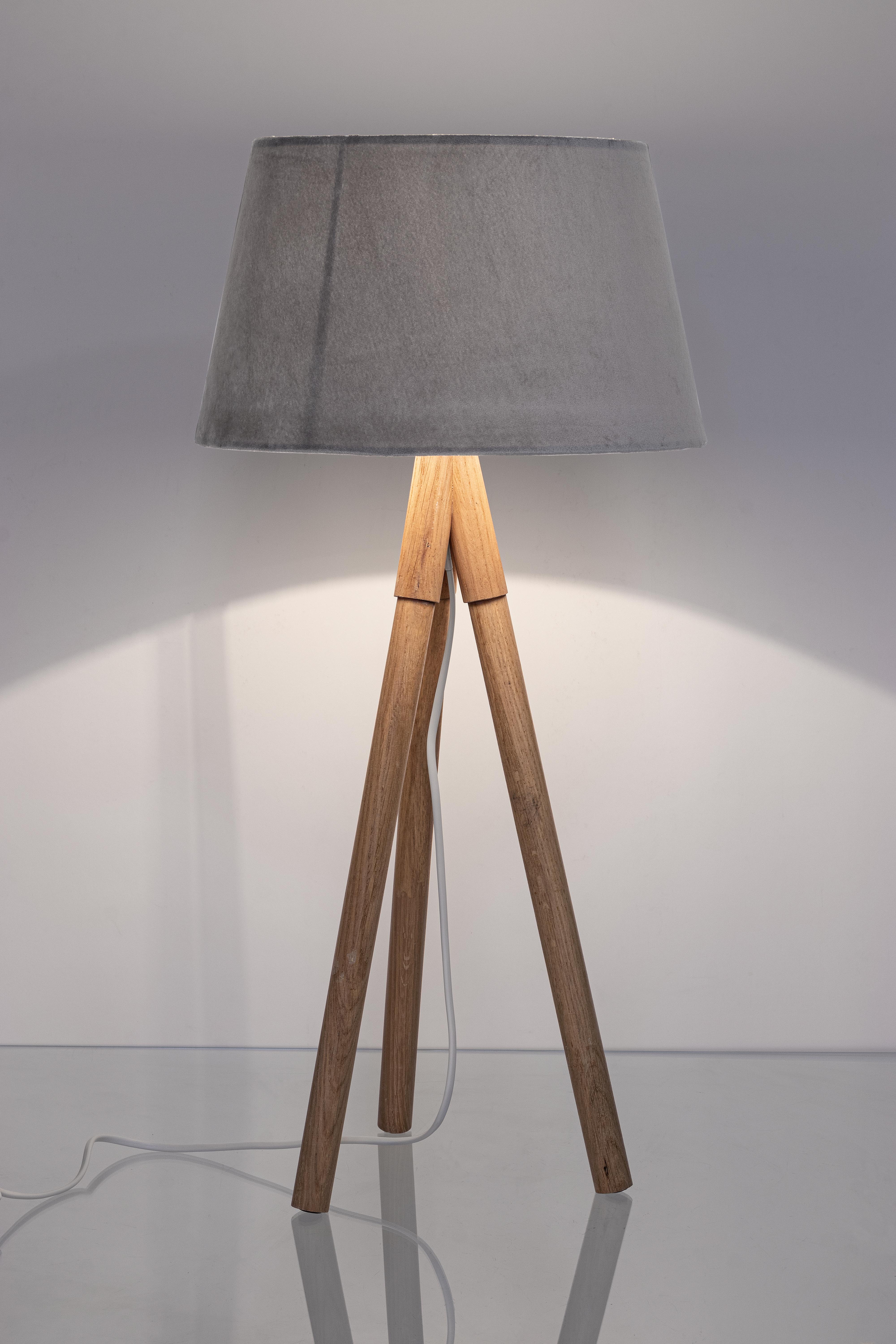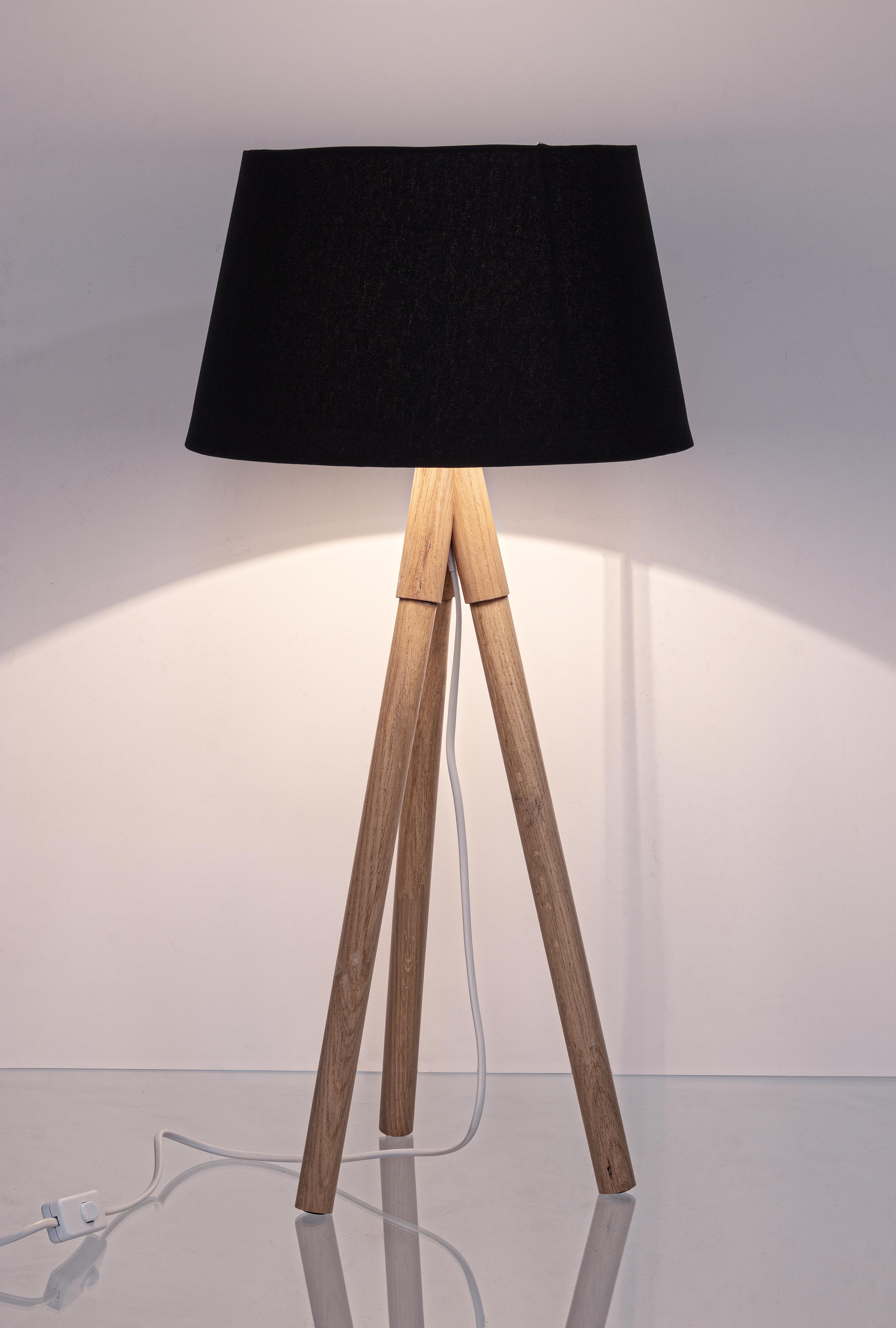 Lampada da tavolo "Wallas" treppiede in legno di quercia h 69 cm
