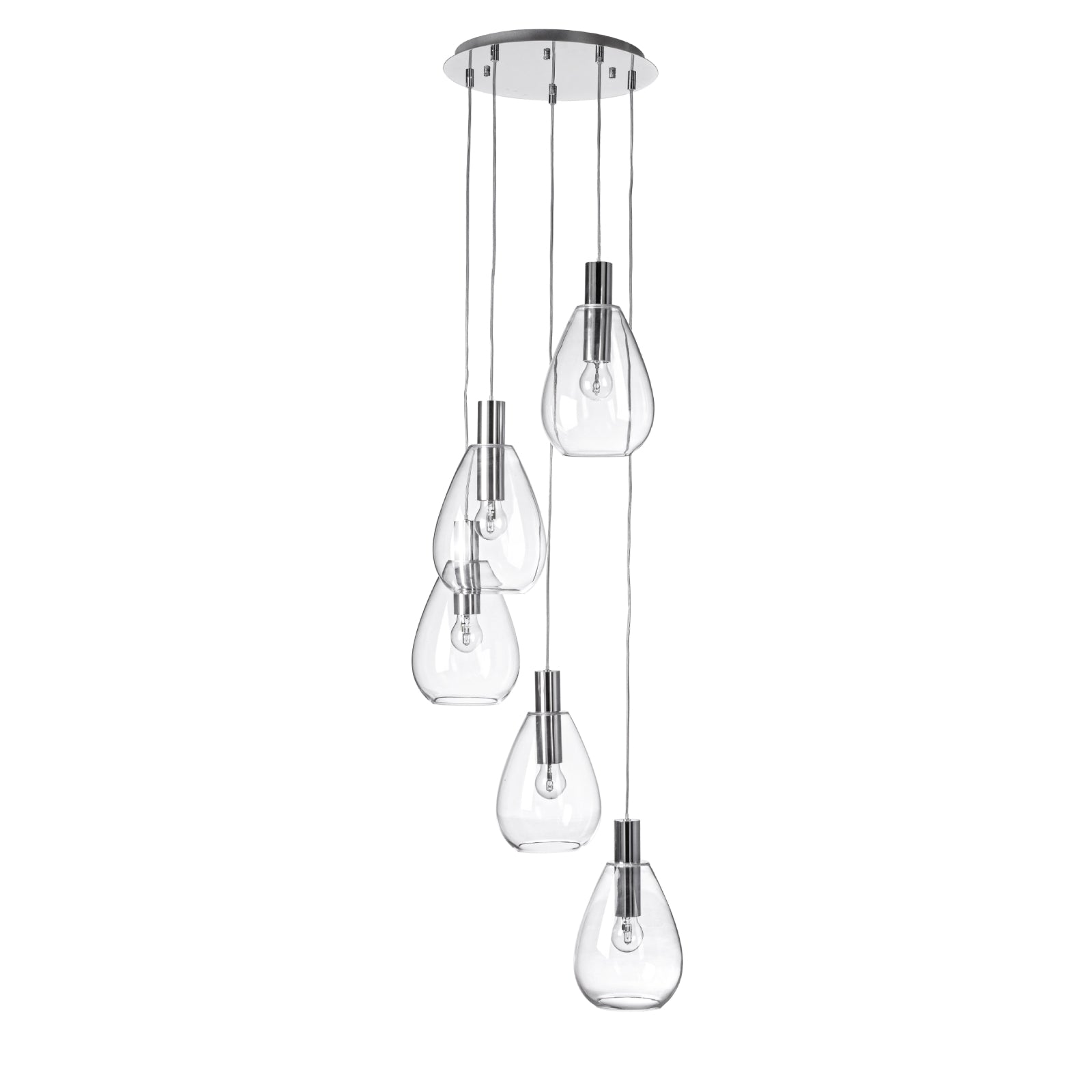 Lampadario "Glaring" in acciaio e vetro