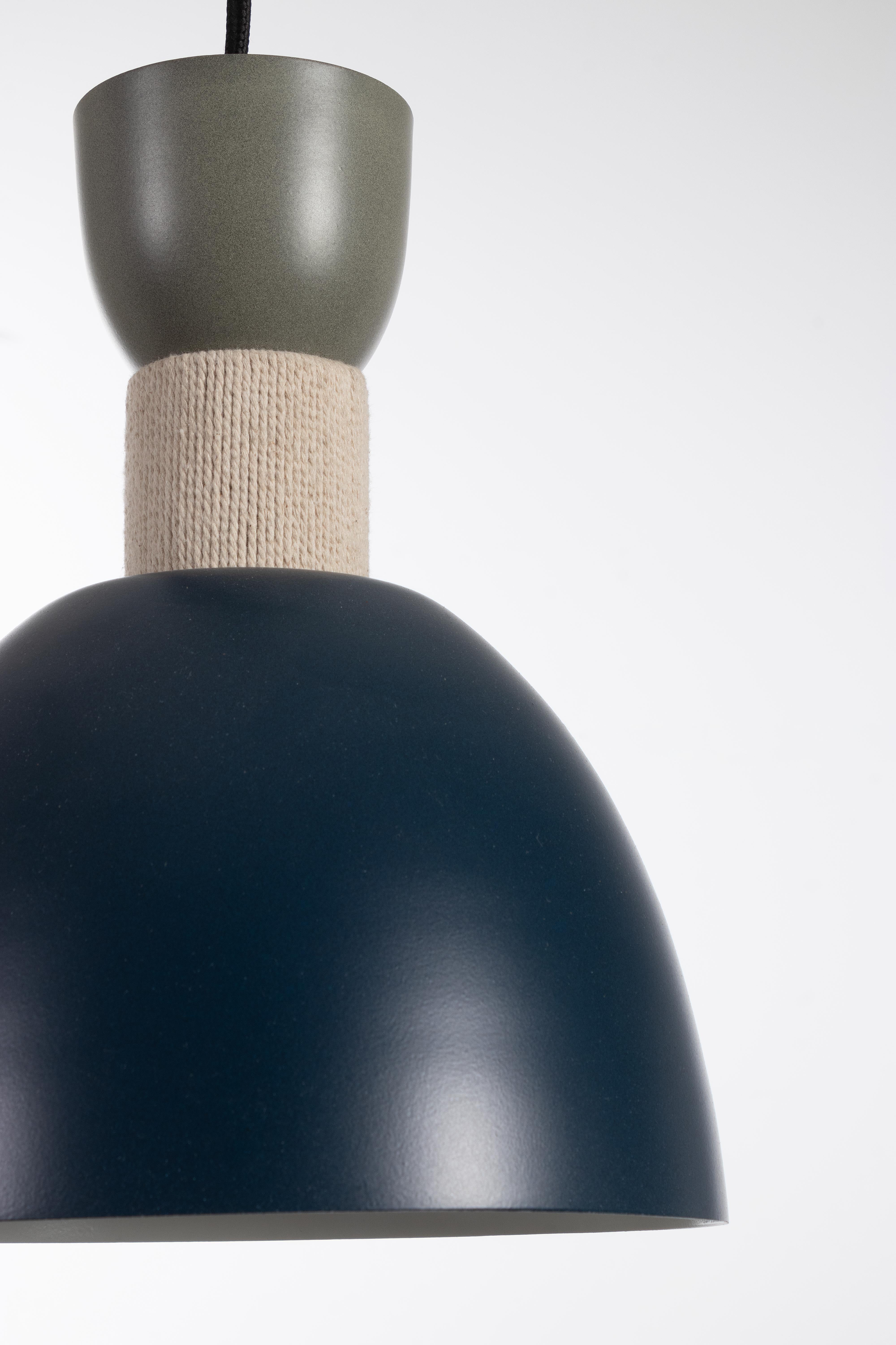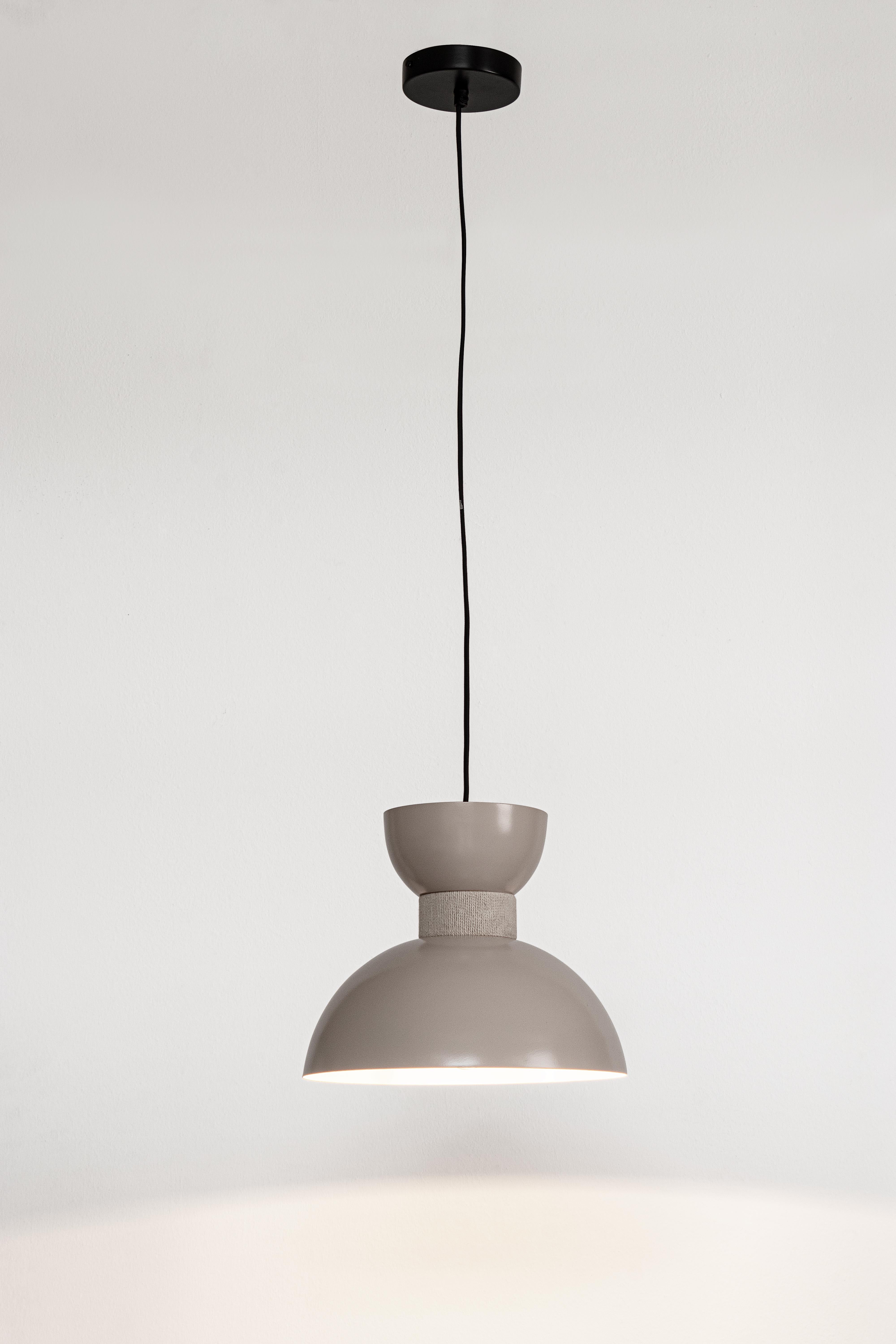 Il corpo principale è realizzato in metallo, conferendo solidità e un aspetto moderno. Il cotone viene impiegato per la creazione di elementi decorativi, introducendo un tocco di morbidezza e comfort visivo.