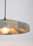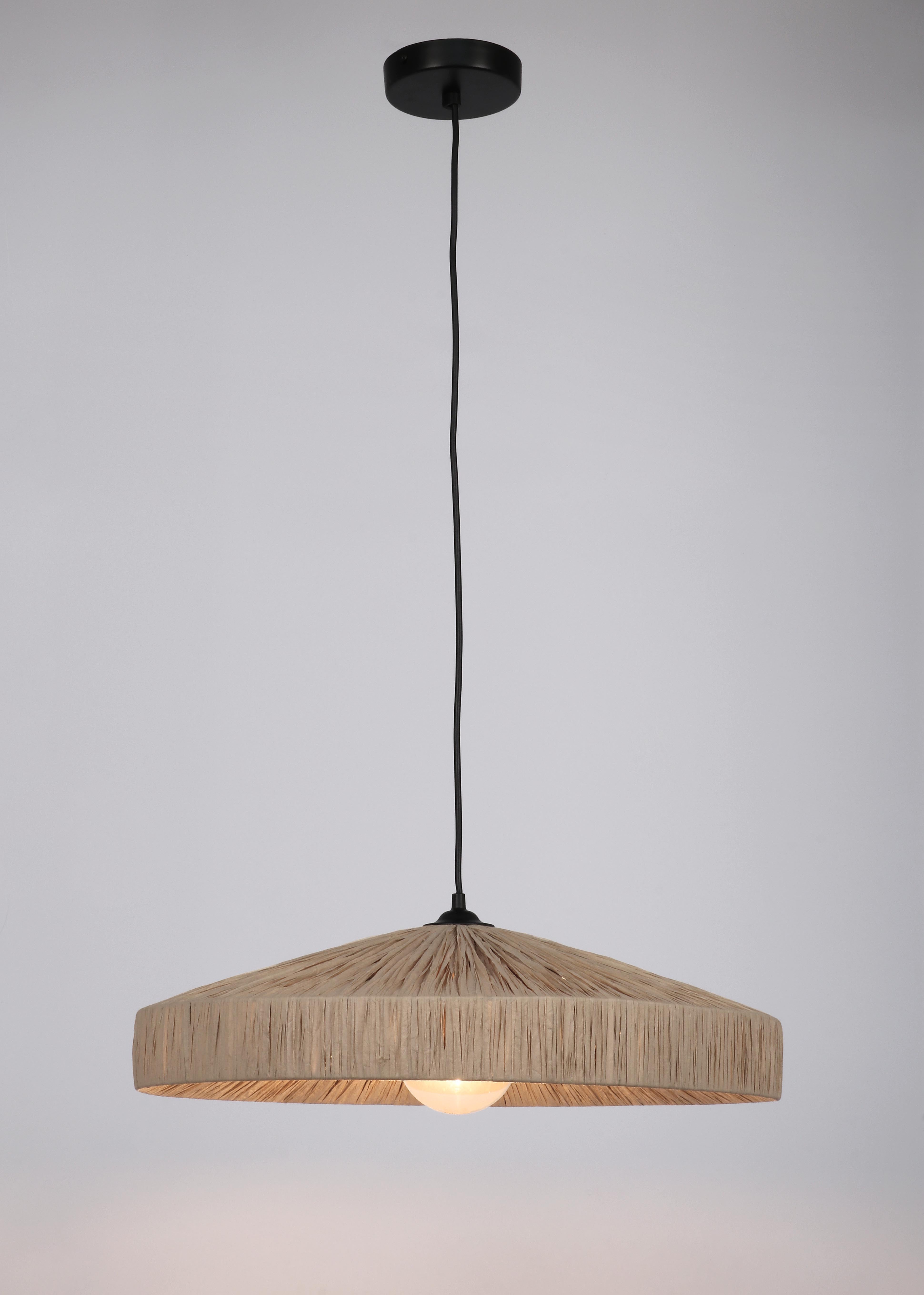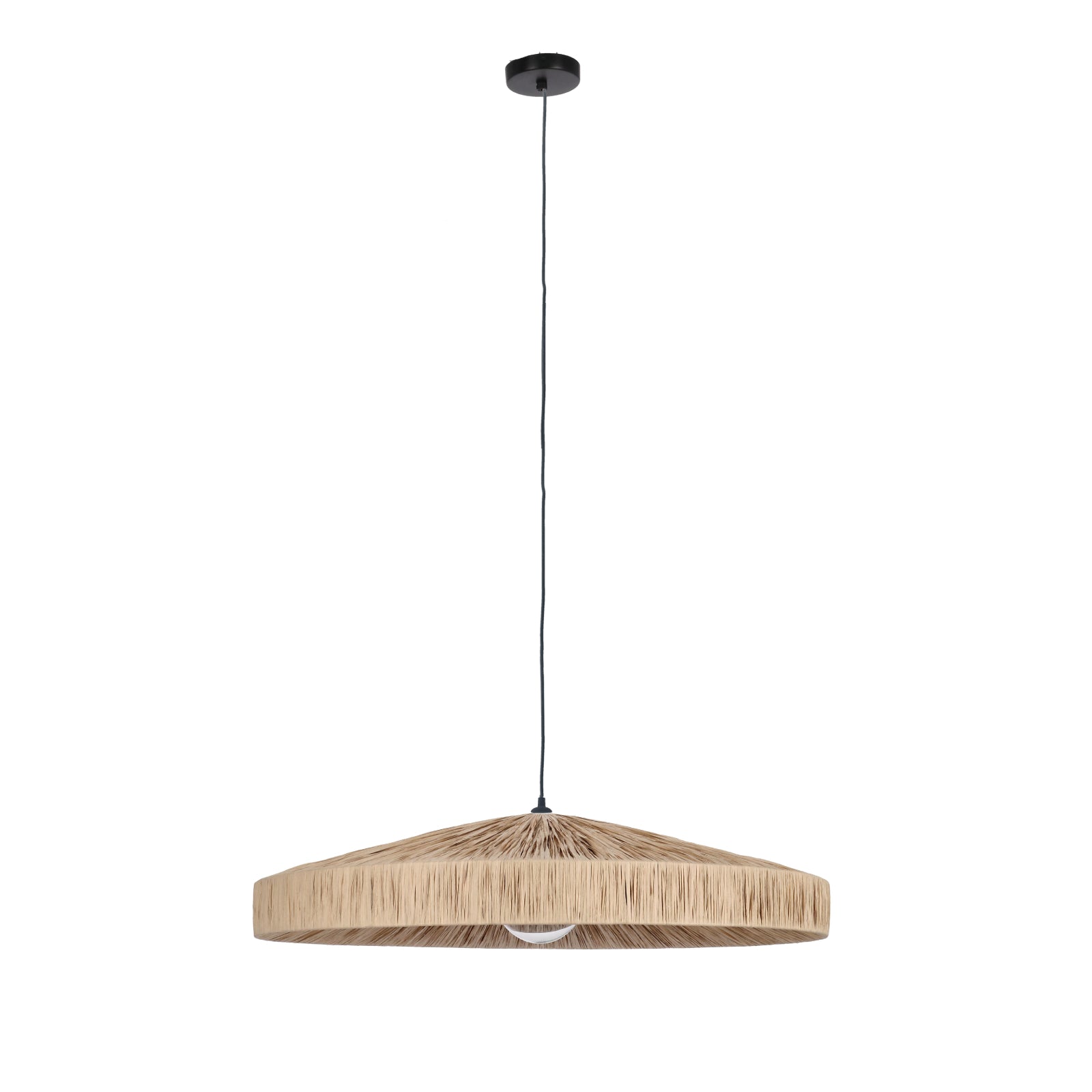 Il lampadario "Kanda" è un'elegante creazione che fonde con maestria materiali come rafia e metallo. Questa combinazione di elementi naturali e industriali crea un'atmosfera accattivante e moderna.
