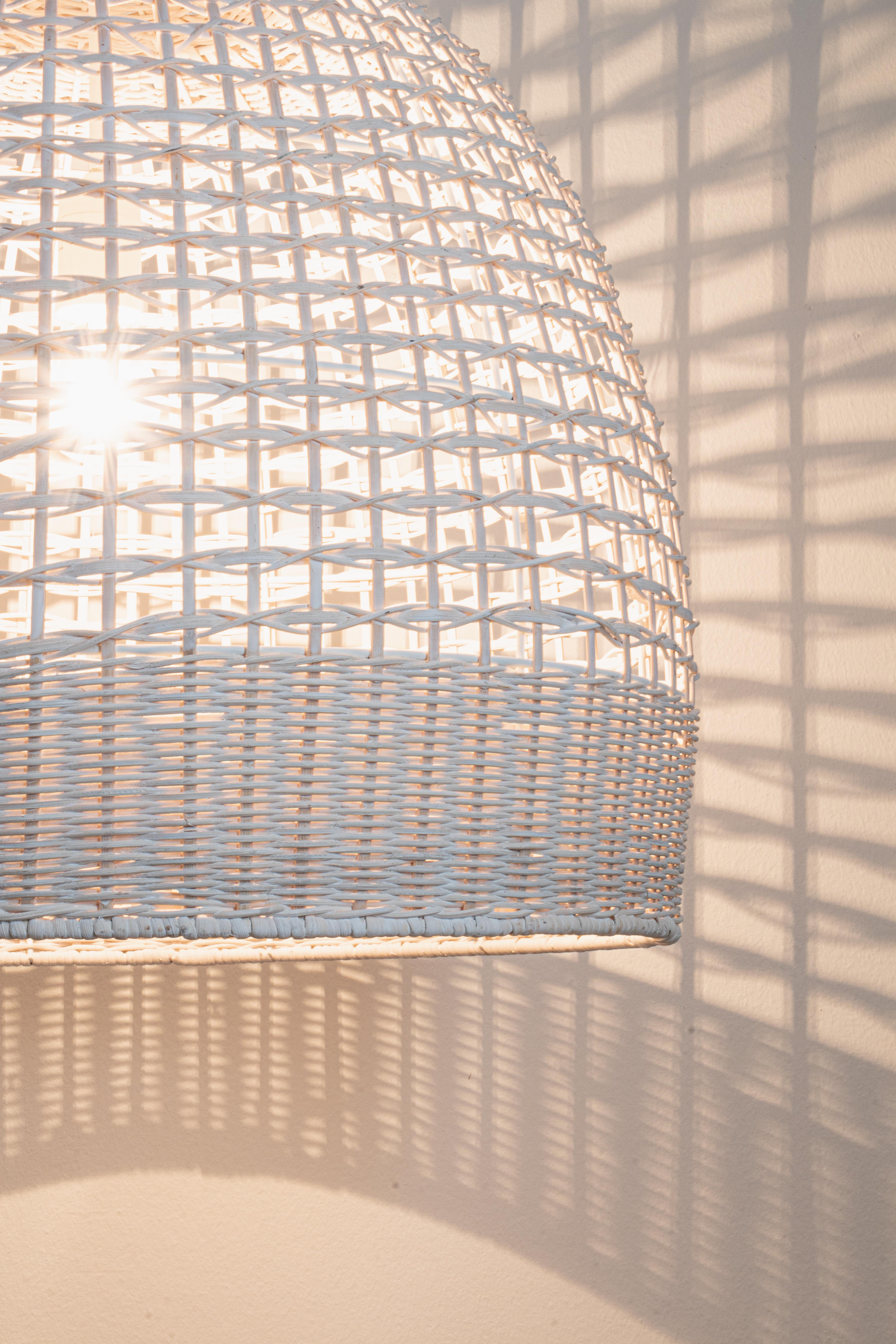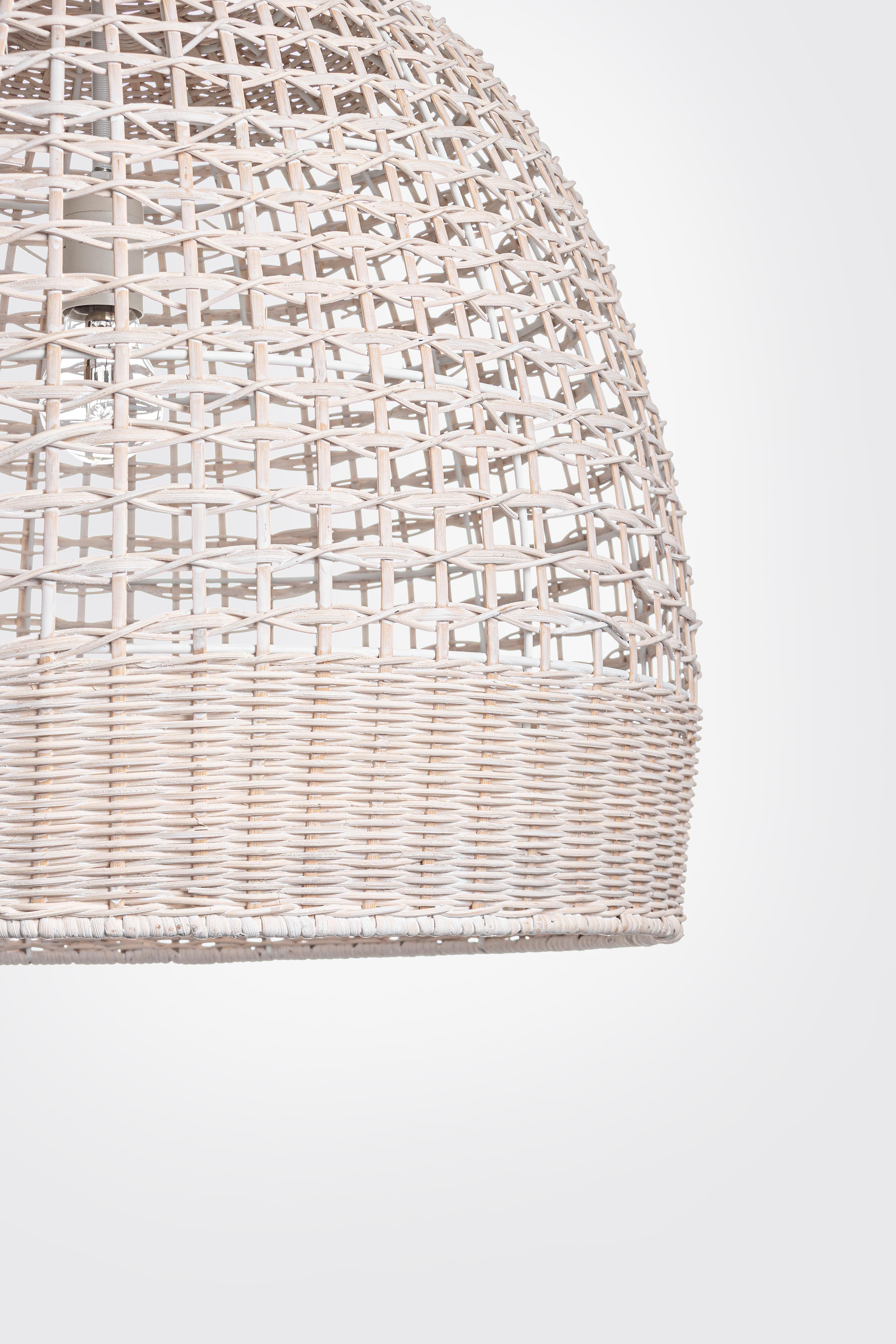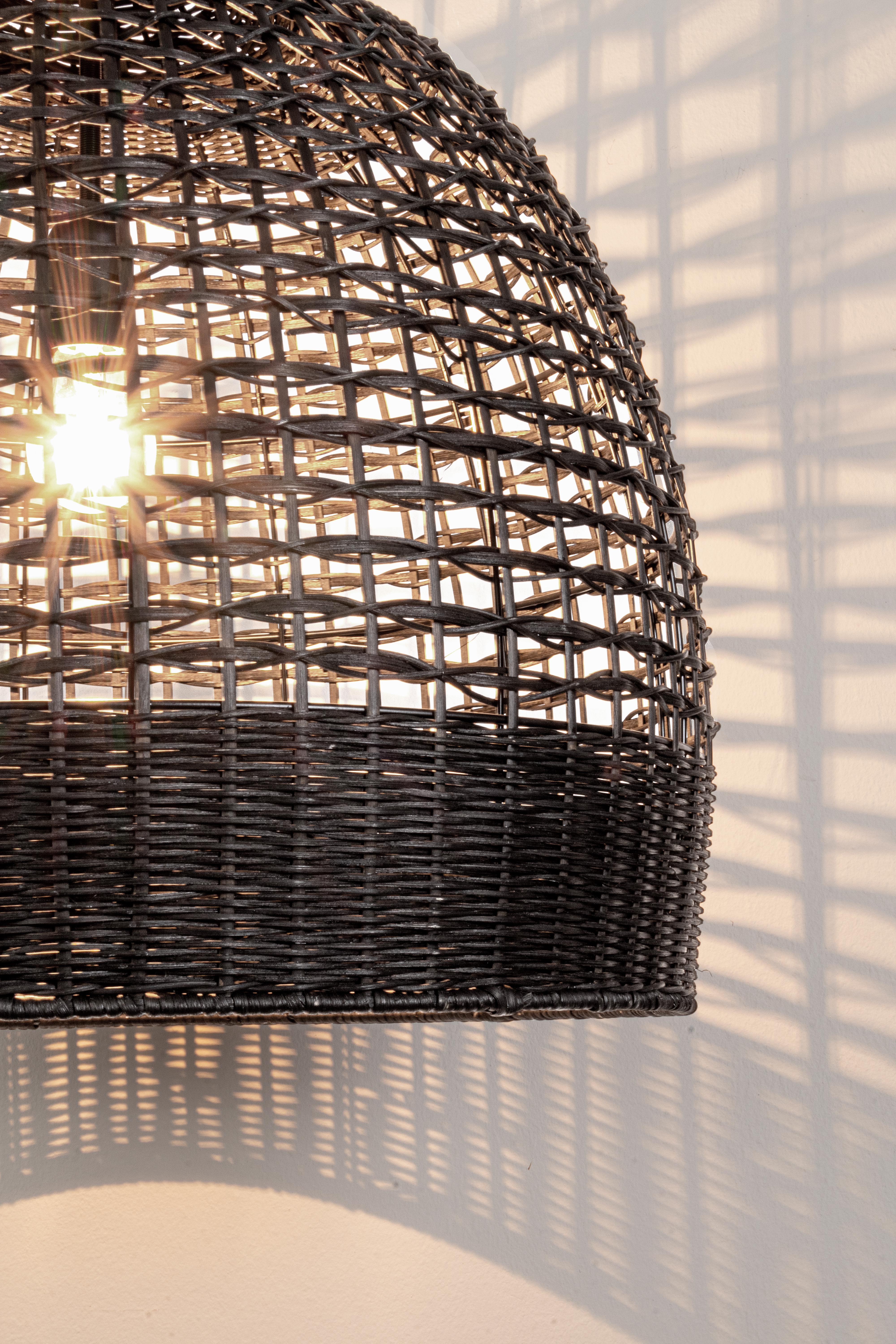 Il lampadario "Siwa" presenta un design accattivante realizzato principalmente in acciaio e rattan. La sua struttura, con un diametro di 53 cm, combina la robustezza dell'acciaio con l'eleganza naturale del rattan, creando un connubio armonioso di materiali.
