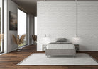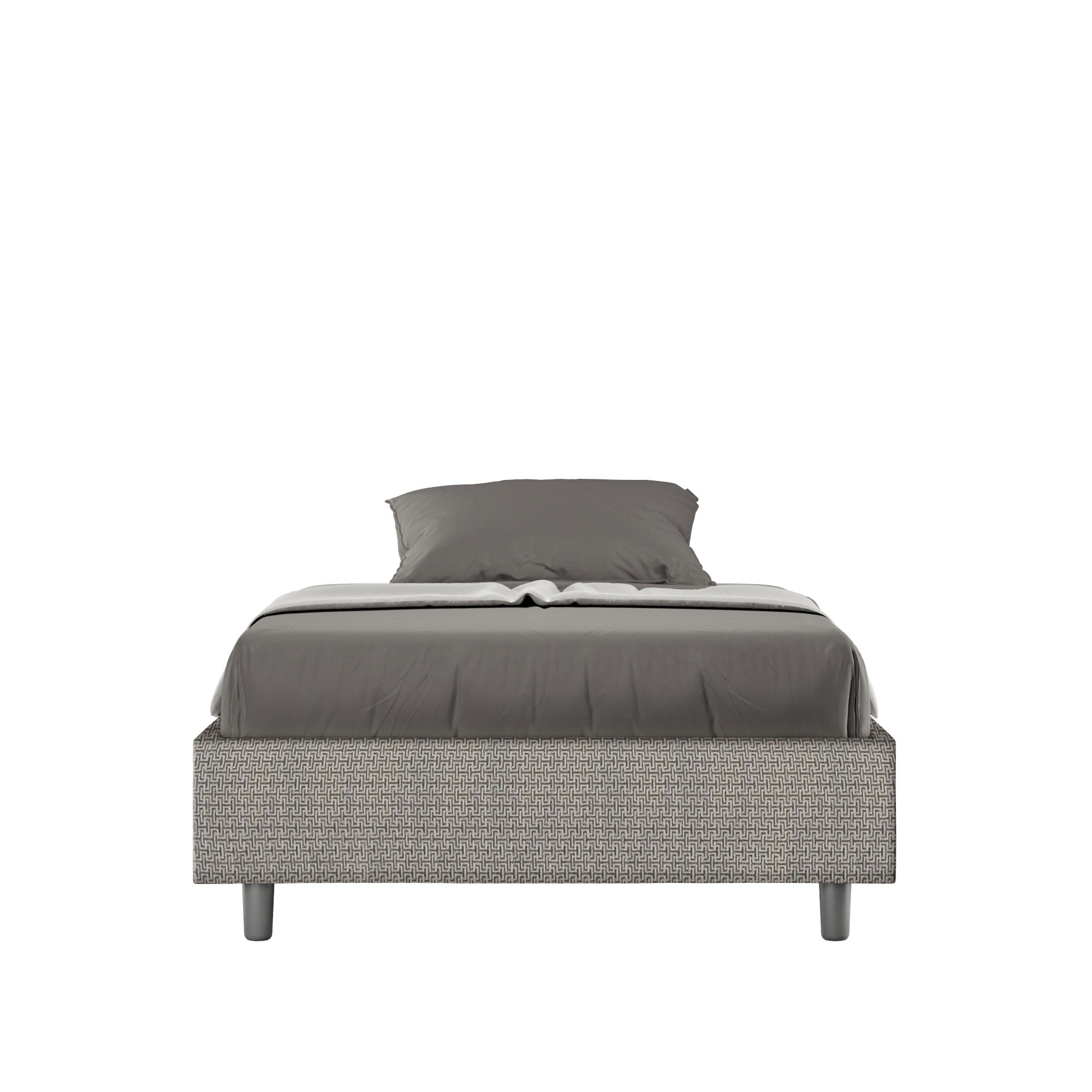 Il tessuto labirinto dona carattere e movimento visivo, trasformando il letto in un vero elemento d’arredo capace di valorizzare l’ambiente.