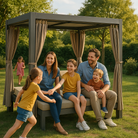 Le tende, montate sul baldacchino a quattro sostegni, aggiungono un tocco di classe e sono perfette per proteggersi dagli insetti e per fornire ombra e privacy.