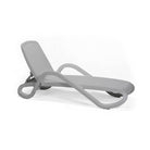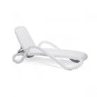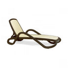 Lettino prendisole "Nardi Alfa" con braccioli, caratterizzato da struttura tubolare in resina e interno in tessuto sintetico traspirante.