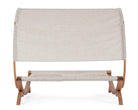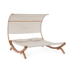 Lettino sospeso "Noes" 2 posti con tettuccio e cuscinetti, struttura in legno, seduta comoda