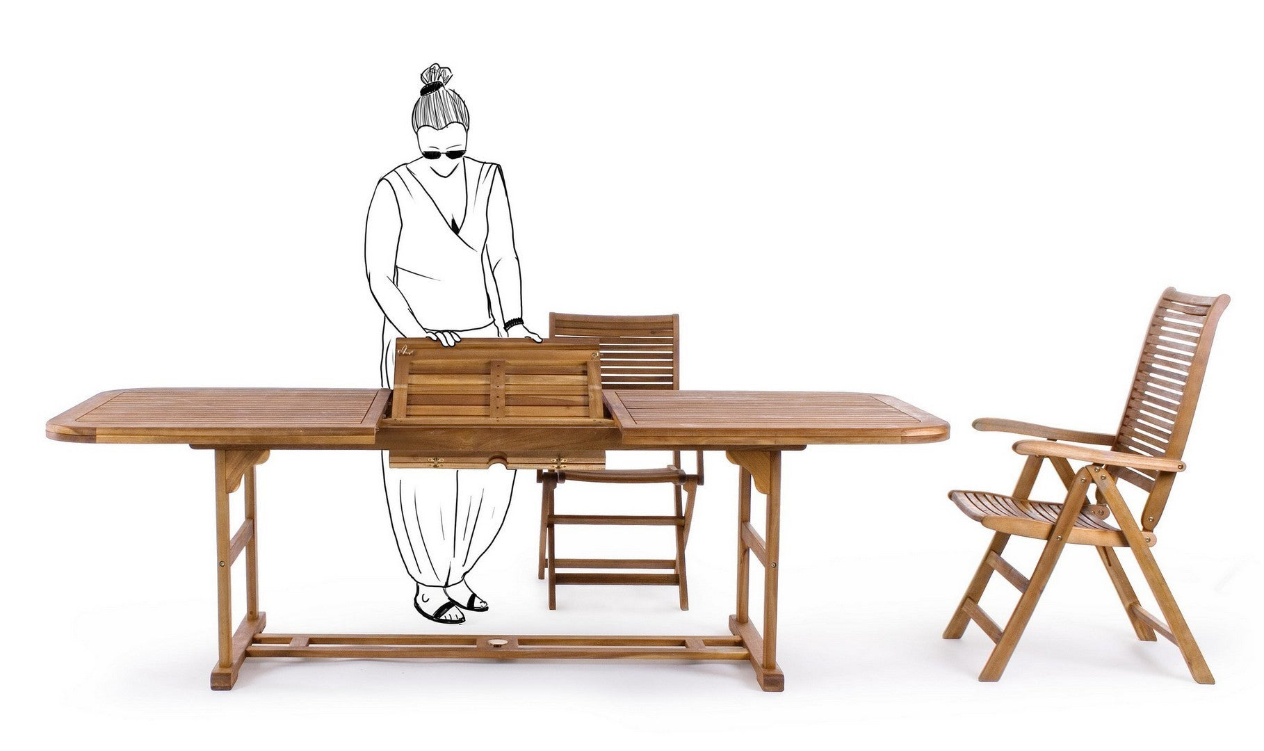 La solidità della sdraio è ulteriormente garantita dalla viteria in acciaio galvanizzato, che conferisce alla struttura una resistenza superiore agli agenti atmosferici e una maggiore durabilità nel tempo.