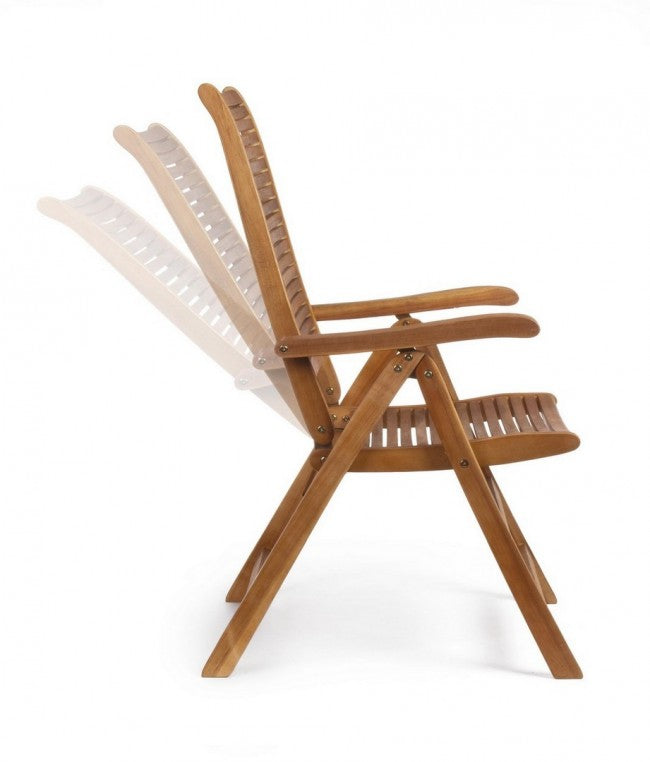 Sedia sdraio "Noemi" in legno di acacia, finitura ad olio, pieghevole per esterno