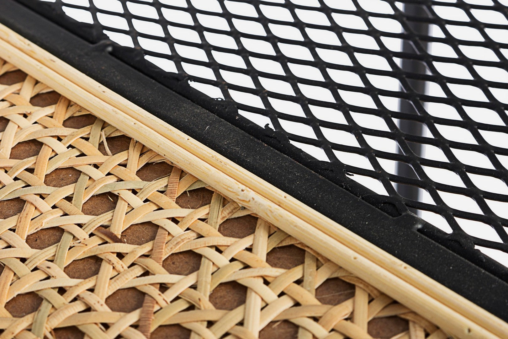 L’acciaio, con il suo design lineare e industriale, crea un contrasto interessante con i piani in MDF e rattan, aggiungendo un elemento di modernità a qualsiasi ambiente.