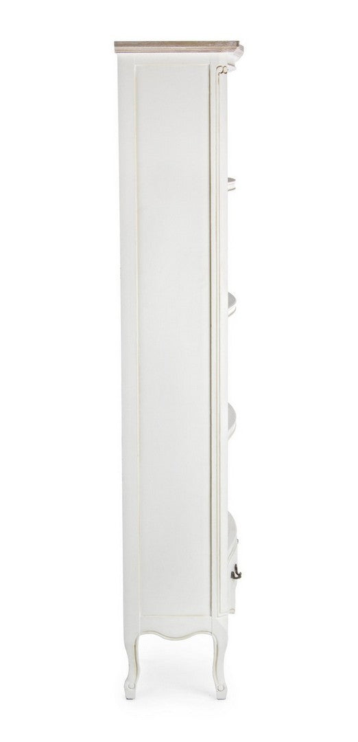 La libreria "Justine" si presenta come un elegante complemento d’arredo per interni, caratterizzato da una struttura in legno di paulownia, rifinito in colore bianco.