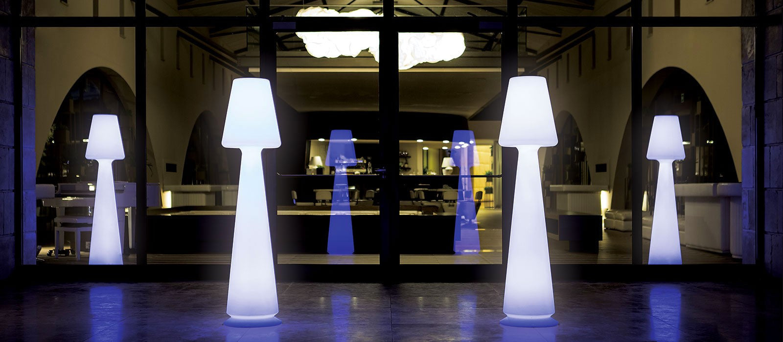 Rende suggestivo ogni ambiente, indoor e outdoor, anche grazie alla sua gamma cromatica di luci che sposano alla perfezione la sua finitura opaca.