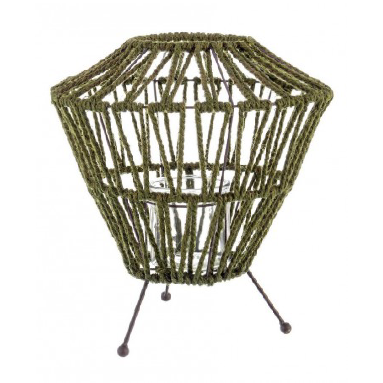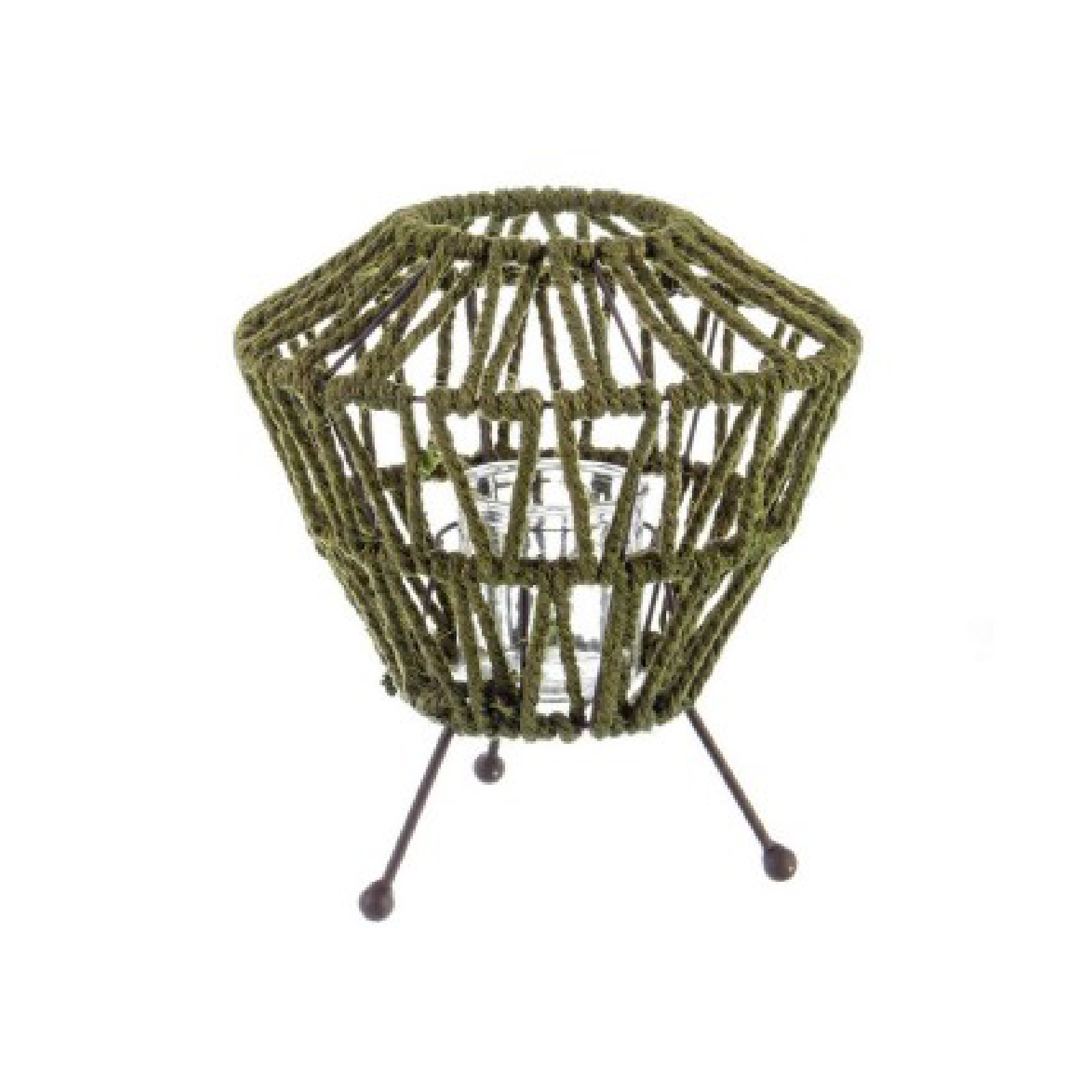 Lanterna Grass tre piedi verde in metallo corda e vetro da esterno