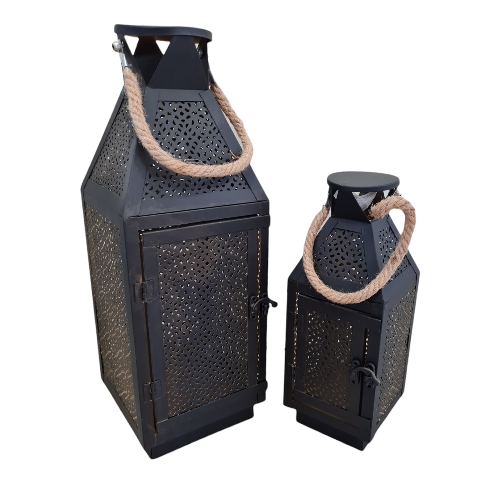 Lanterna in metallo decorativa per interno ed esterno con portacandela h 20 cm
