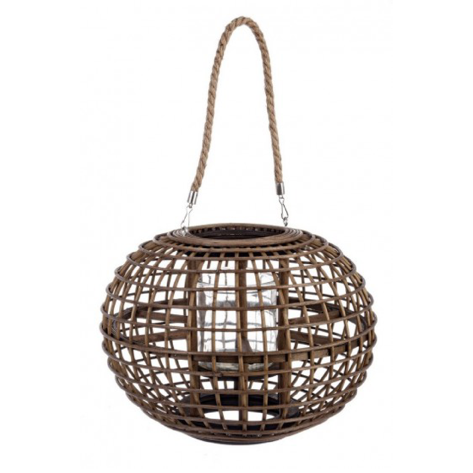 Lanterna Mombasa tonda con corda e vetro da esterno