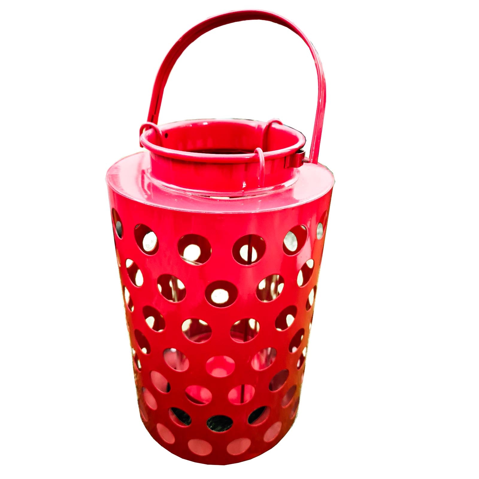 Lanterna porta candela in metallo traforato appendibile da esterno ed interno