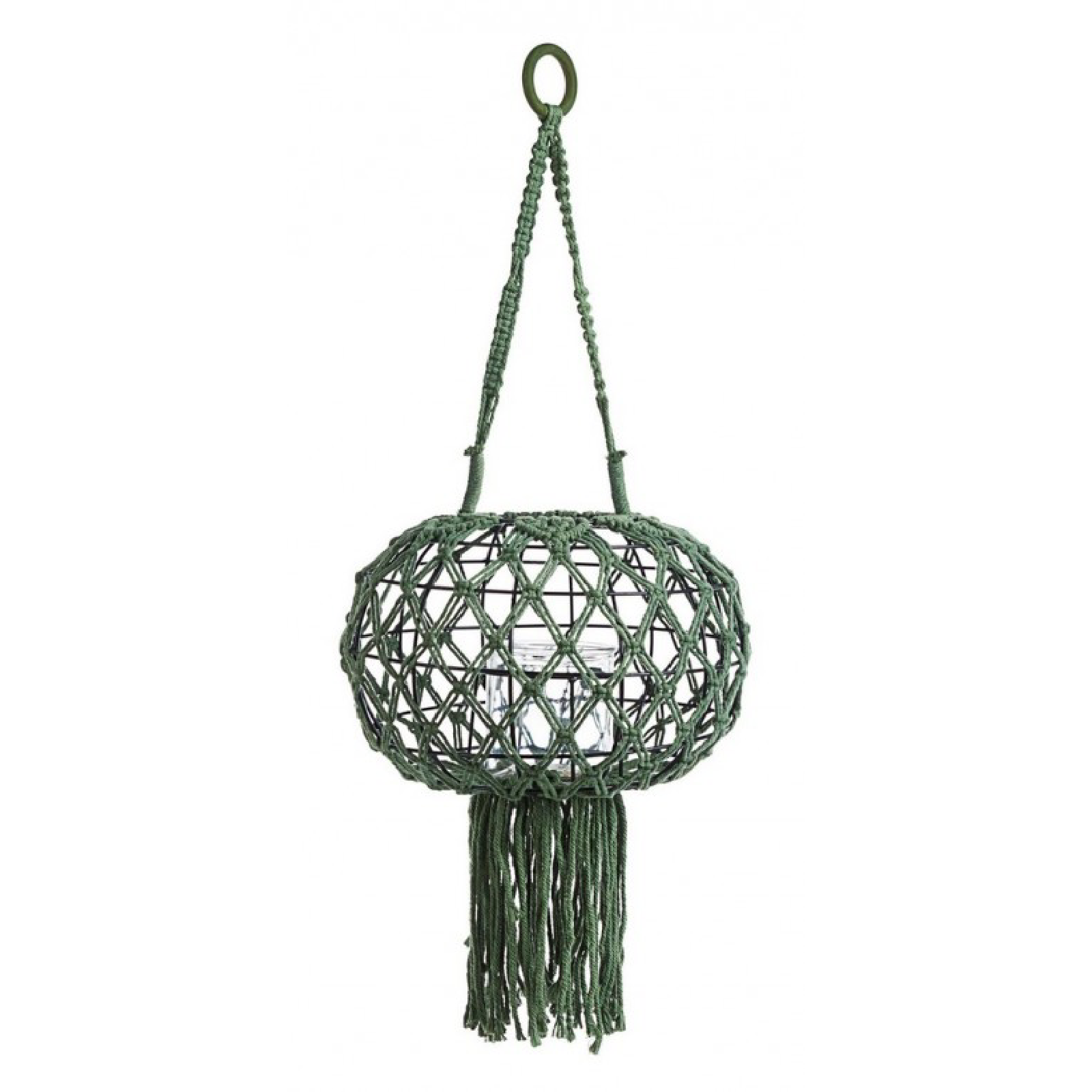Lanterna sospesa Macrame verde in metallo corda e vetro da esterno