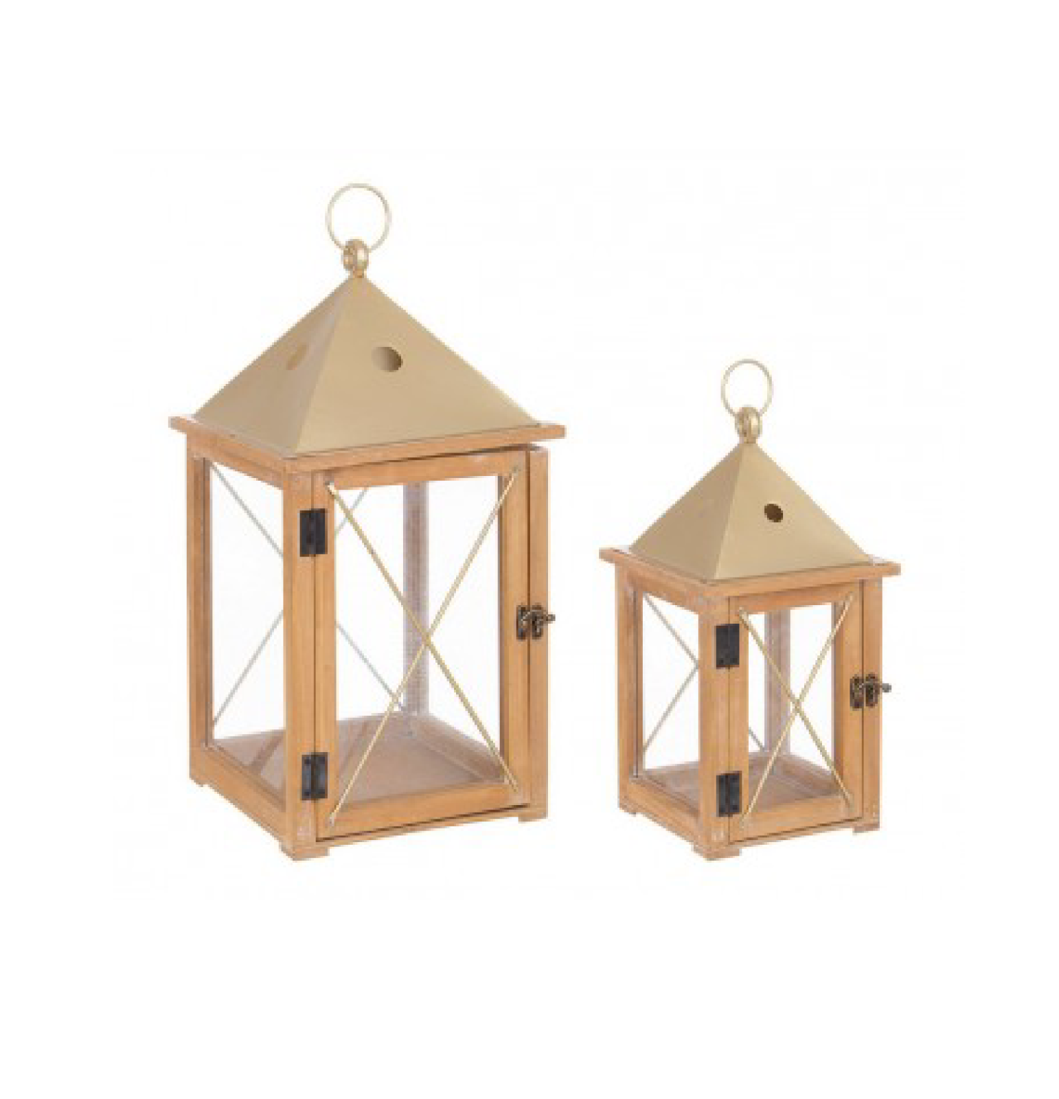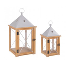 Set 2 Lanterna beatific bassa in acciaio e legno di abete da esterno