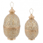 Le due lanterne hanno dimensioni differenziate: Ø21,5x41h e Ø26x51h. Questa varietà di dimensioni consente di posizionarle in modo creativo e versatile, aggiungendo un tocco di eleganza e luminosità agli ambienti circostanti.