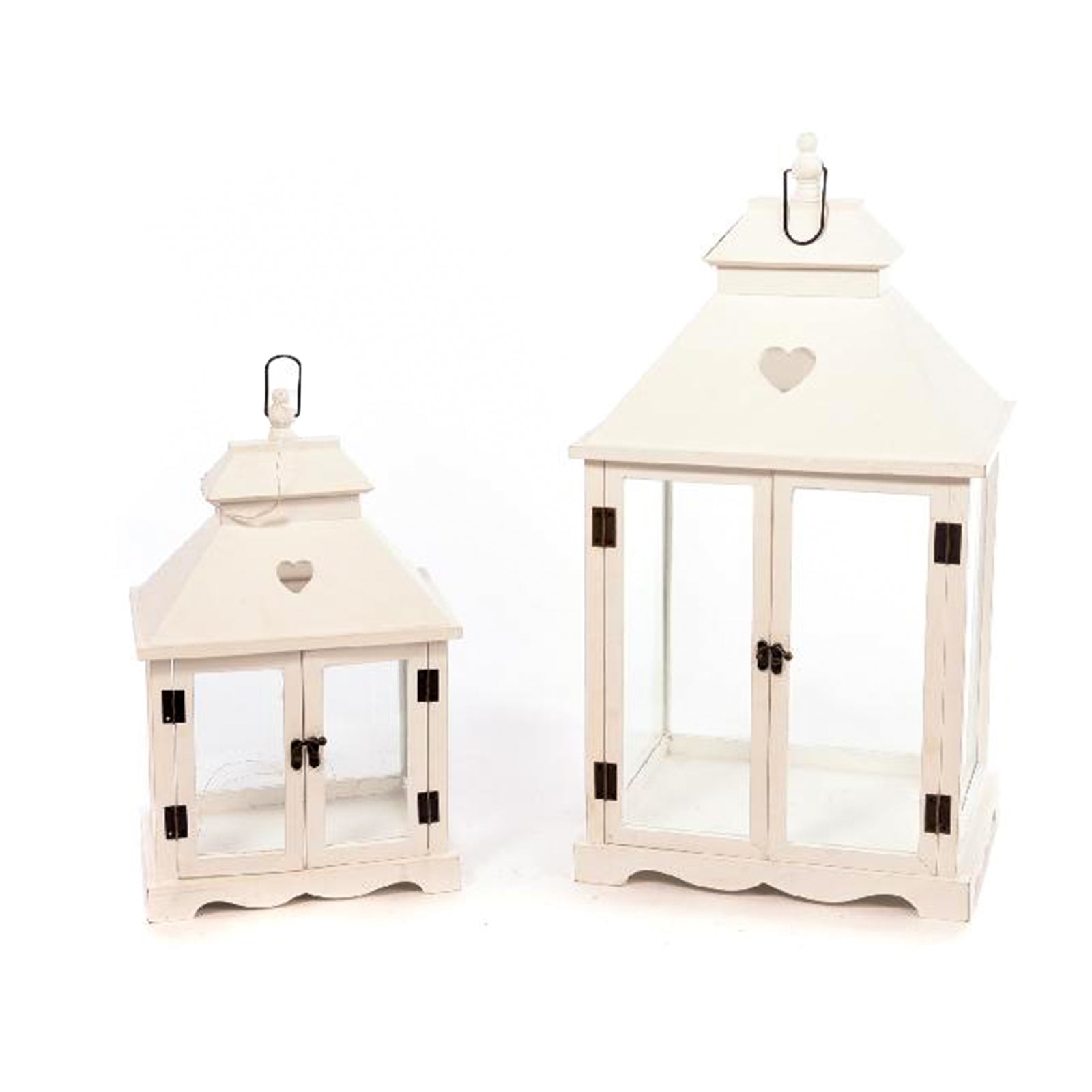 Set 2 pezzi di lanterne in legno portacandele decorazione per interno ed esterno