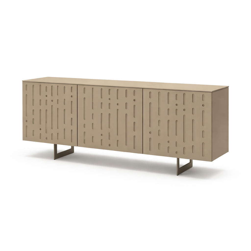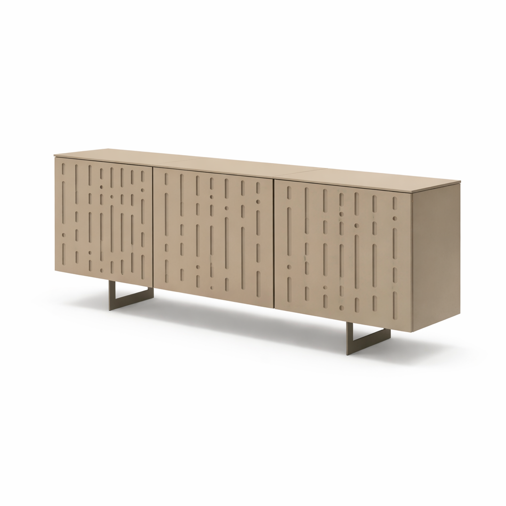 Pensata per il soggiorno, la zona living o la sala da pranzo, offre ampio spazio contenitivo mantenendo un impatto visivo leggero e raffinato.