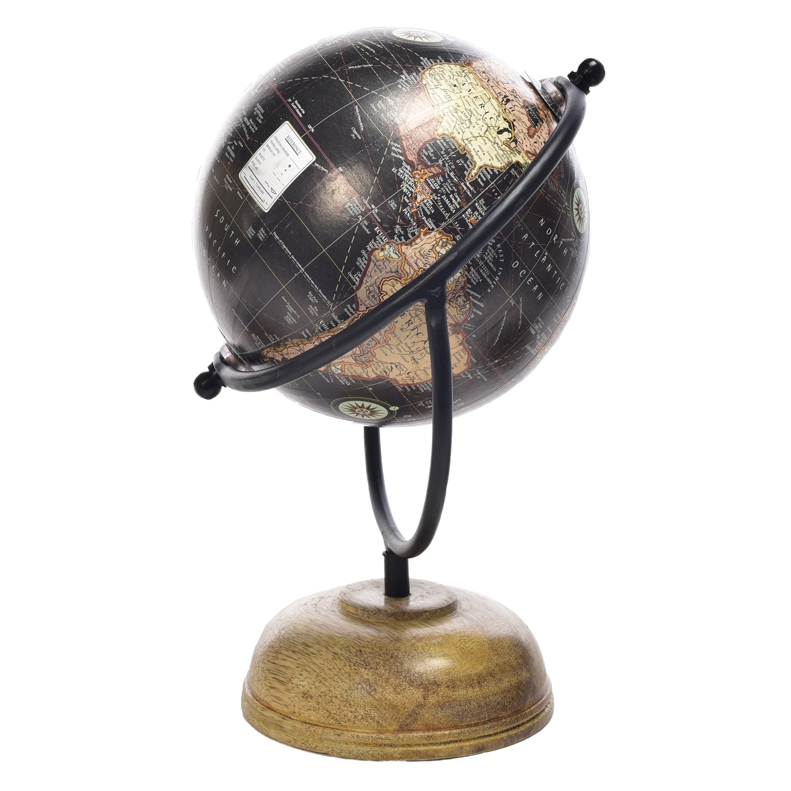 Mappamondo decorativo per scrivania con piedistallo in legno h 22 cm