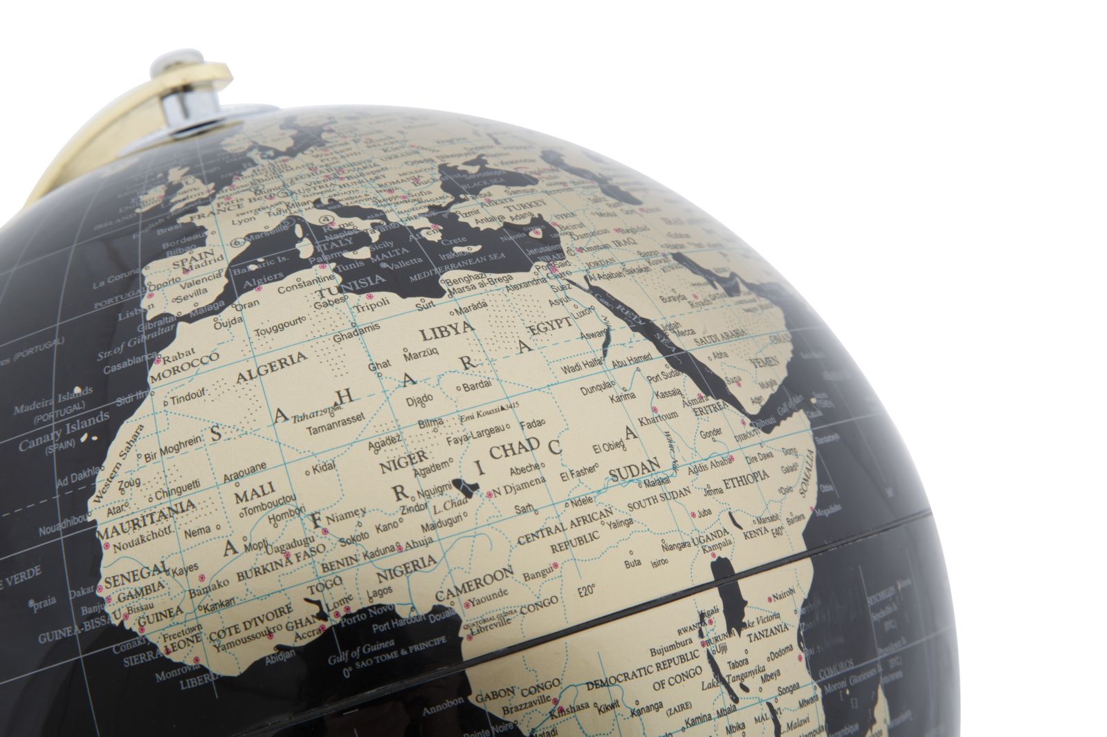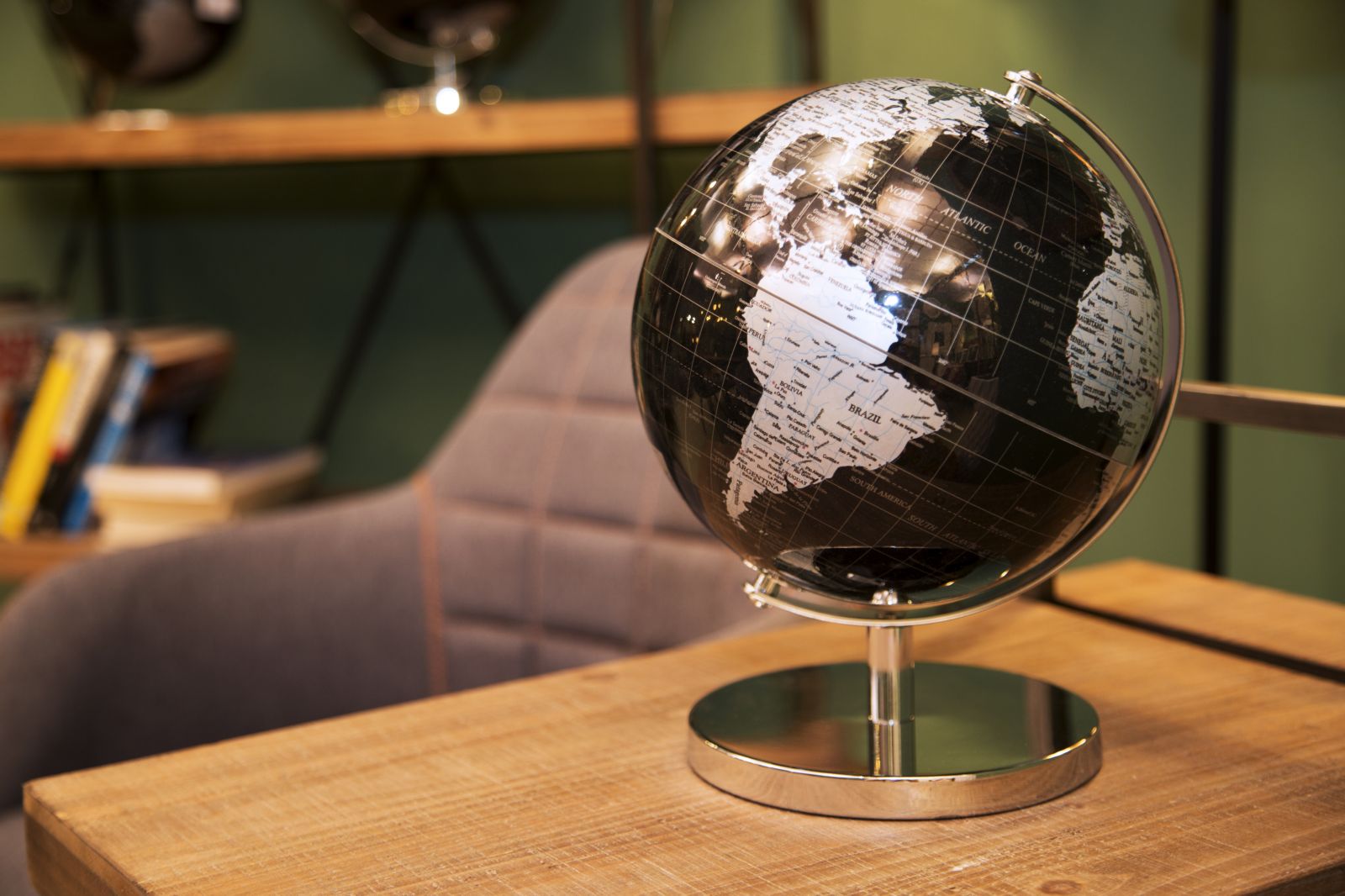 Il mappamondo girevole con base in metallo è un elegante oggetto decorativo pensato per arricchire gli interni di ambienti come uffici, studi, sale da soggiorno o camere.