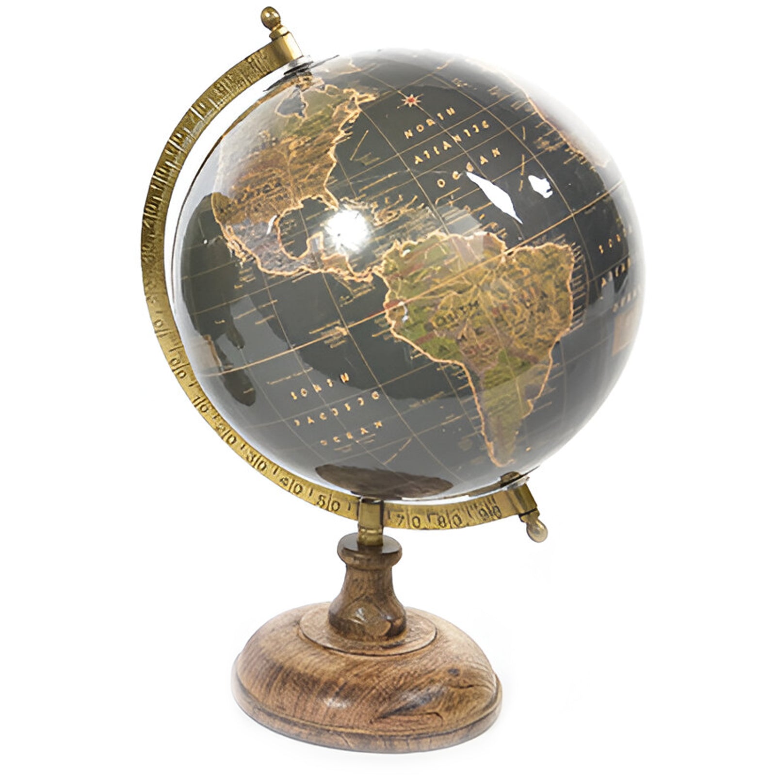 Il mappamondo con base in legno è una decorazione per interni che unisce eleganza e conoscenza geografica.