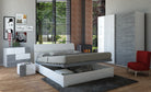 Il bianco lucido dona luminosità all’ambiente, amplificando la percezione dello spazio, mentre l’effetto cemento conferisce un aspetto moderno e ricercato, capace di valorizzare sia camere da letto adulte che camerette giovanili.