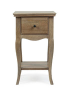Il comodino "Domitille" per camera è un pezzo d'arredo raffinato con una struttura in legno di mango e schienale/fondo cassetti in MDF. Questa combinazione di materiali offre un design elegante e una solidità duratura.