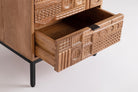 Il legno di mango, noto per la sua durezza e resistenza, conferisce al comodino una durata eccezionale, mentre le sue venature naturali e la tonalità calda conferiscono al mobile un aspetto distintivo e accogliente.