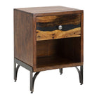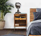 Comodino "Mustang" struttura in legno di acacia e metallo per interni