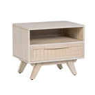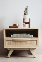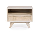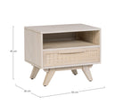 Il legno di mango conferisce al comodino un aspetto naturale e caldo, con venature uniche che aggiungono un tocco di carattere. Lo schienale e il fondo del cassetto in MDF garantiscono una struttura complessiva solida e ben rifinita.