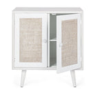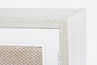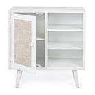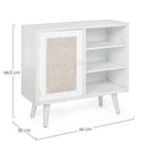 Credenza "Montiel" in legno MDF, con anta frontale rivestito in tessuto, finitura con vernice a base d'acqua, stile rustico