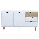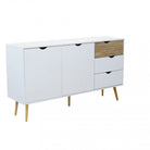 Mobile in legno "Bradley" con 2 ante e 3 cassetti in legno bianco e naturale, 147 x 39 x 82 h cm