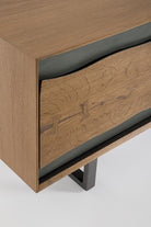 Il mobile porta TV "Garwood" è realizzato in legno MDF impiallacciato, una combinazione che unisce la resistenza e la stabilità del pannello di fibra a media densità con l'eleganza estetica del rivestimento in legno.