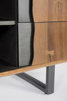 Con un tocco di eleganza, il mobile offre anche spazi funzionali per l'organizzazione di apparecchi elettronici, telecomandi e oggetti decorativi, risultando una scelta estetica e funzionale per il soggiorno.
