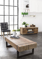 Il mobile porta TV "Tudor" è realizzato in legno di mango, un materiale noto per la sua durabilità e le venature distintive che donano un aspetto naturale e raffinato.