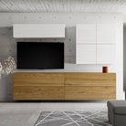Ai lati del vano TV, la parete attrezzata offre ripiani aperti o armadietti con ante, che possono essere utilizzati per riporre dispositivi multimediali, DVD, libri, oggetti decorativi e molto altro ancora.