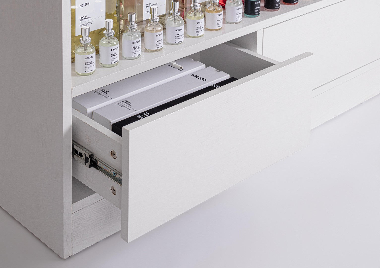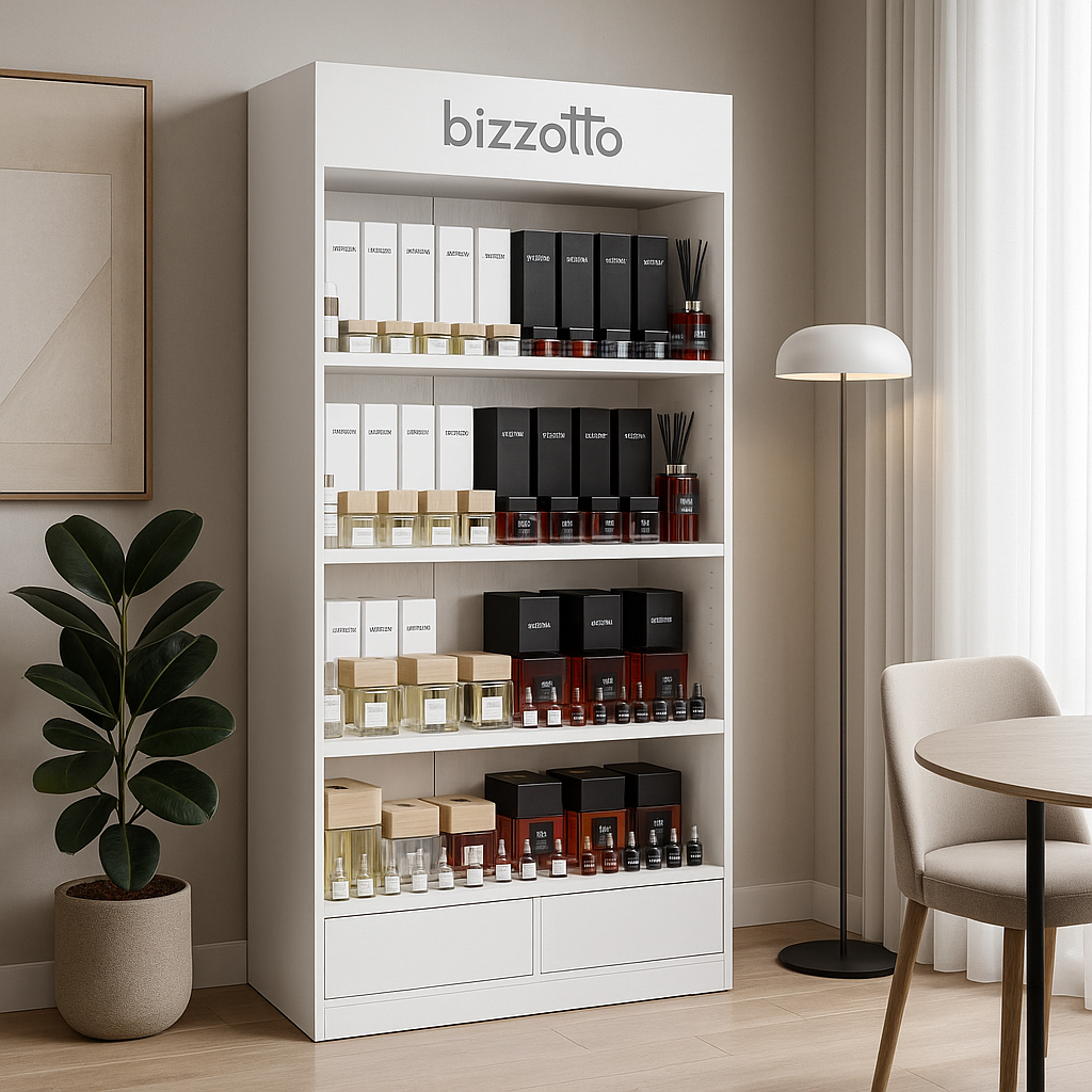 Include elementi d'arredo dedicati alla conservazione e presentazione di bevande e oggetti.