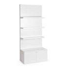 La sua composizione è progettata per ottimizzare lo spazio, grazie a tre ripiani che permettono di esporre in modo ordinato e visibile una varietà di articoli.