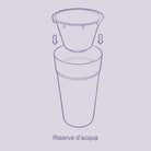 Self-watering system: la riserva d'acqua permette di alimentare la pianta senza bisogno di irrigarla spesso. I fori di drenaggio permettono di scaricare eventuali eccessi d'acqua consentendo alla pianta di attingere alla riserva se necessario.