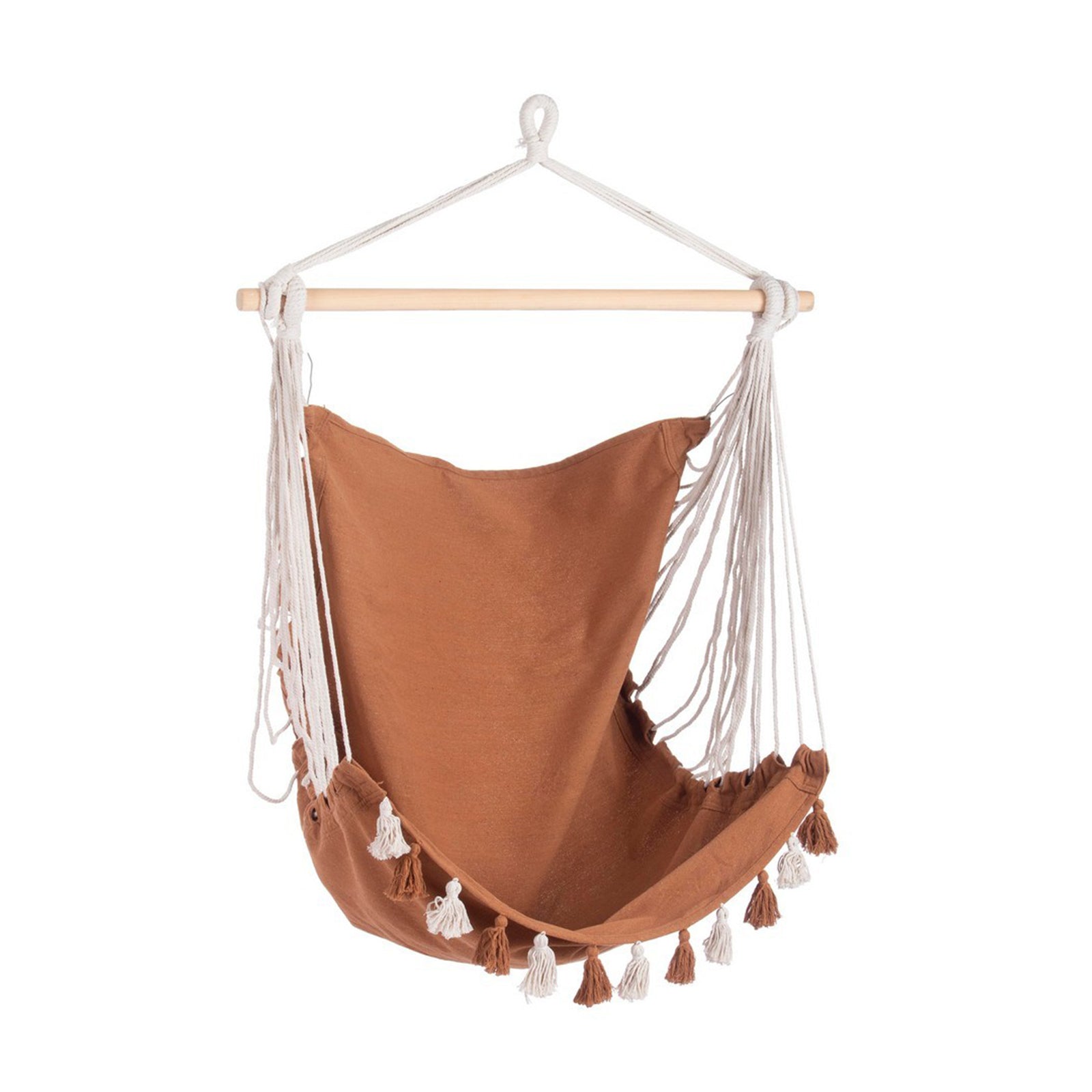 Amaca pensile sospesa "Tassel", con barra in legno, seduta comoda, per interno ed esterno, 130 cm