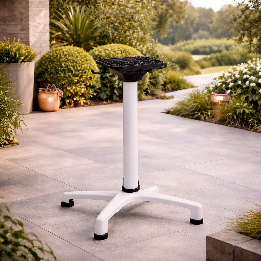La base tavolo Elsa è progettata per offrire stabilità, affidabilità e un design pulito, ideale per ambienti interni ed esterni dal gusto contemporaneo.