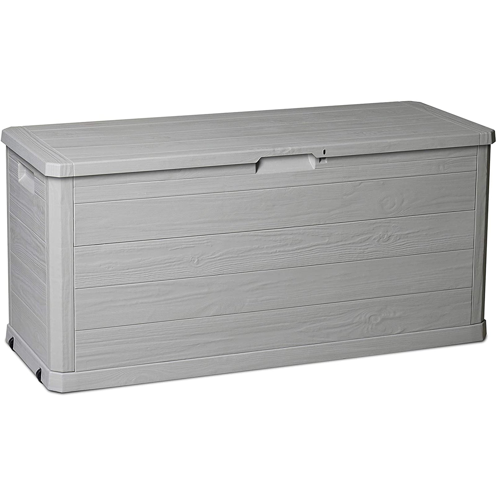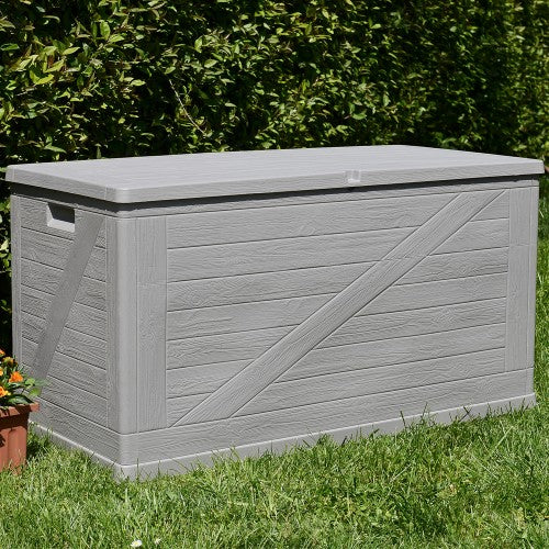 Baule in resina cassapanca multiuso da esterno con ruote lt 420 effetto Legno 120 cm