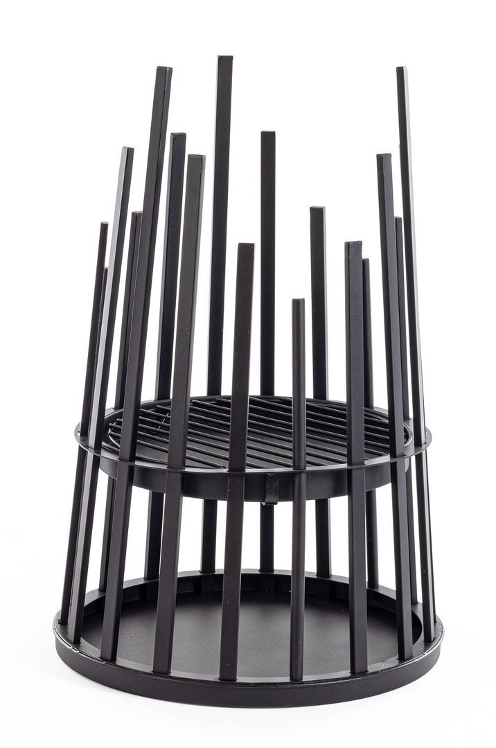 Questo braciere è progettato per creare un'atmosfera accogliente e calda negli spazi esterni. Può essere utilizzato per bruciare legna, carbone o altri combustibili per creare un fuoco vivace e confortante. La sua forma tonda permette una distribuzione uniforme del calore, offrendo una piacevole esperienza di riscaldamento durante le serate fresche.