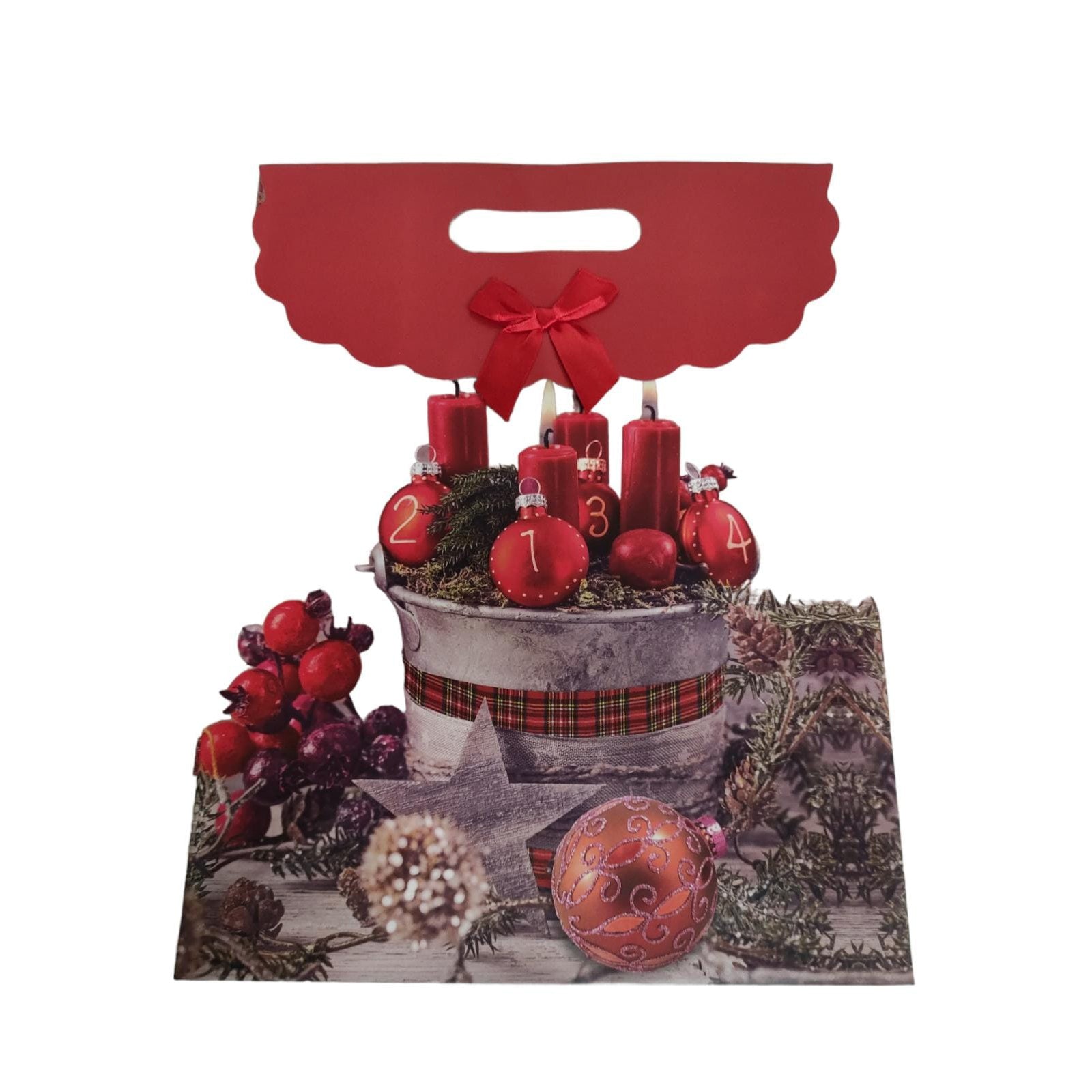 - La busta sacchetto ha un design con candele e palline