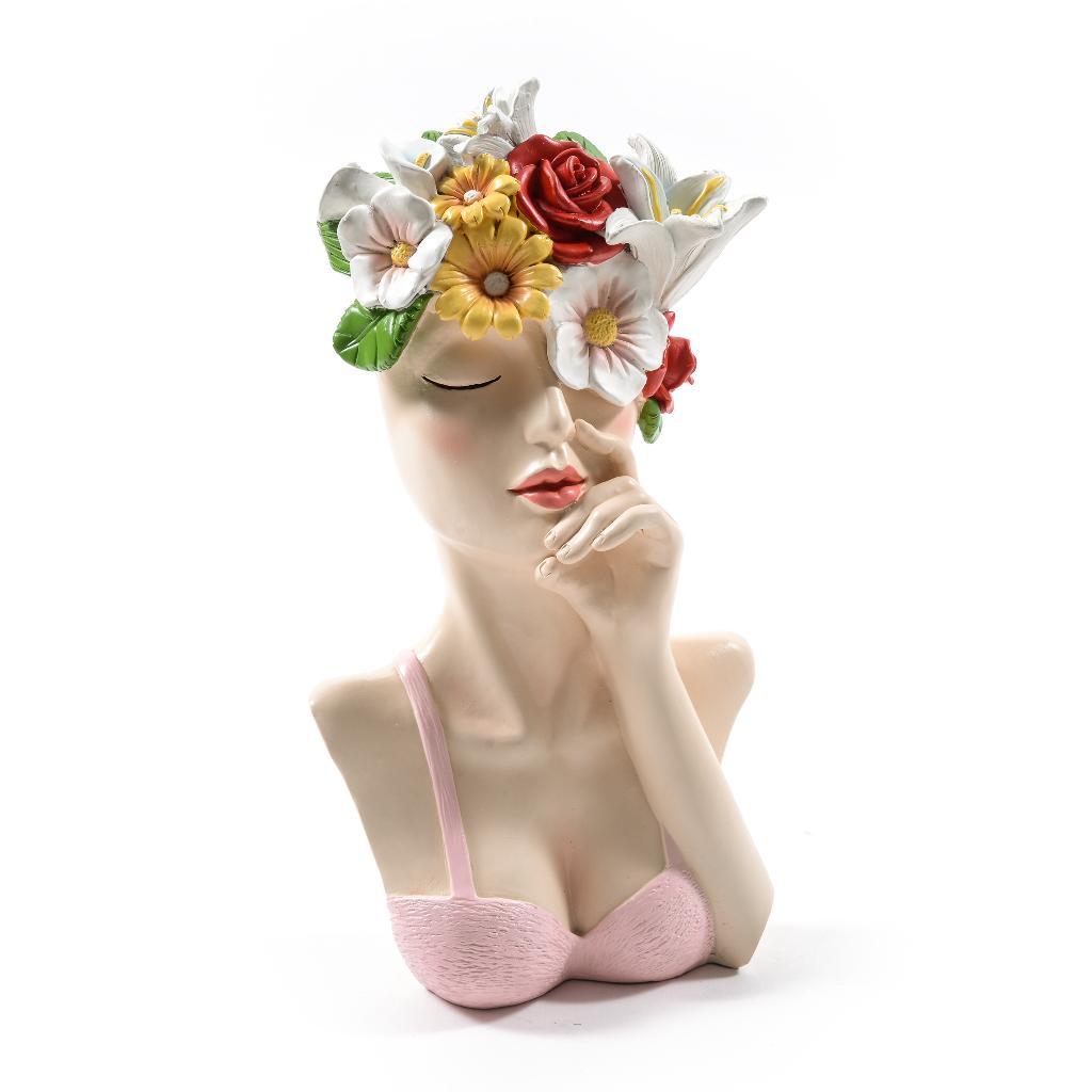 Busto donna realizzato in resina, decorazione per interno ed esterno da 28 cm