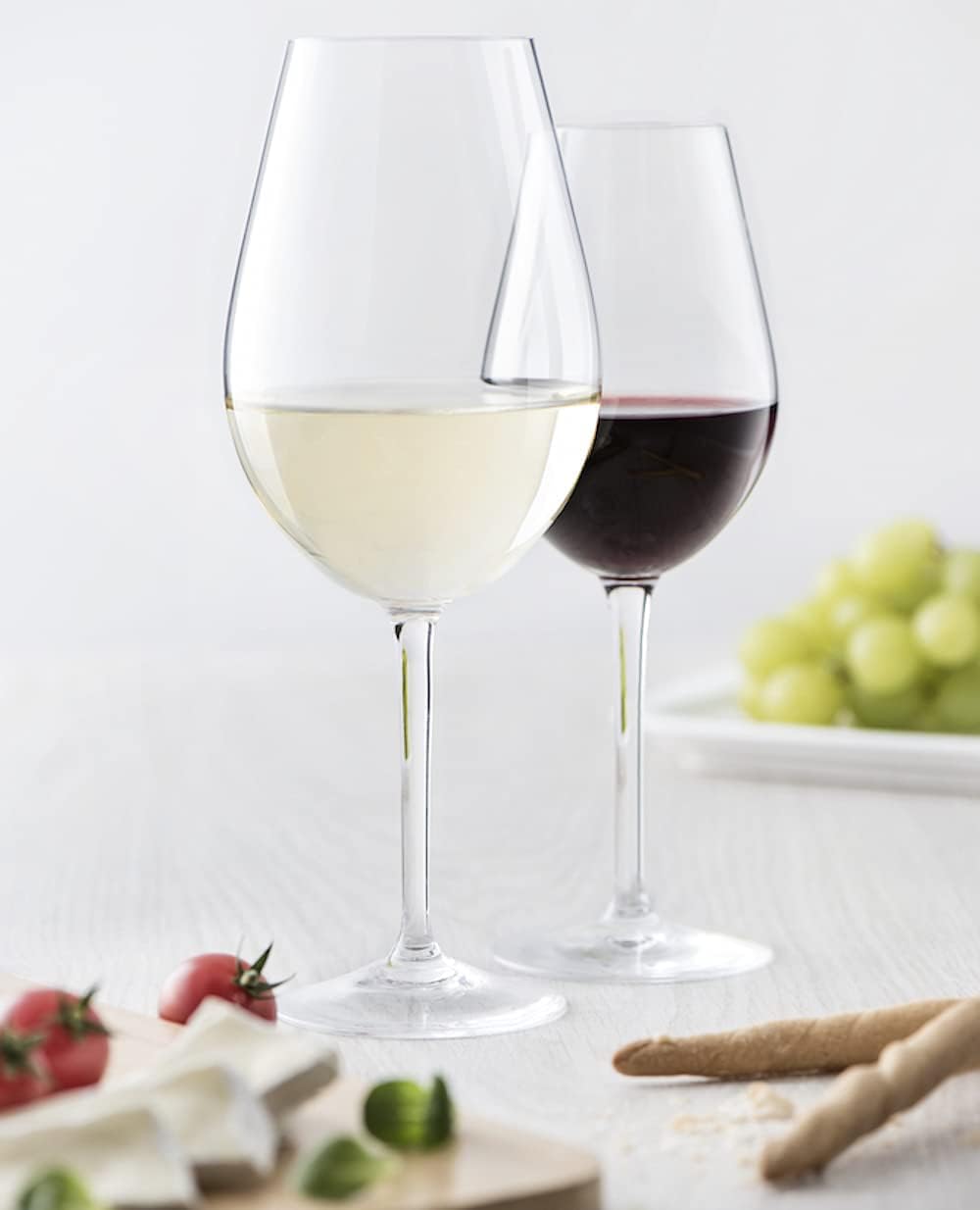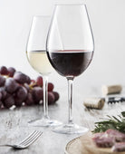 Realizzati in vetro di alta qualità, questi calici presentano un design trasparente che mette in risalto il colore e la lucentezza del vino rosso.